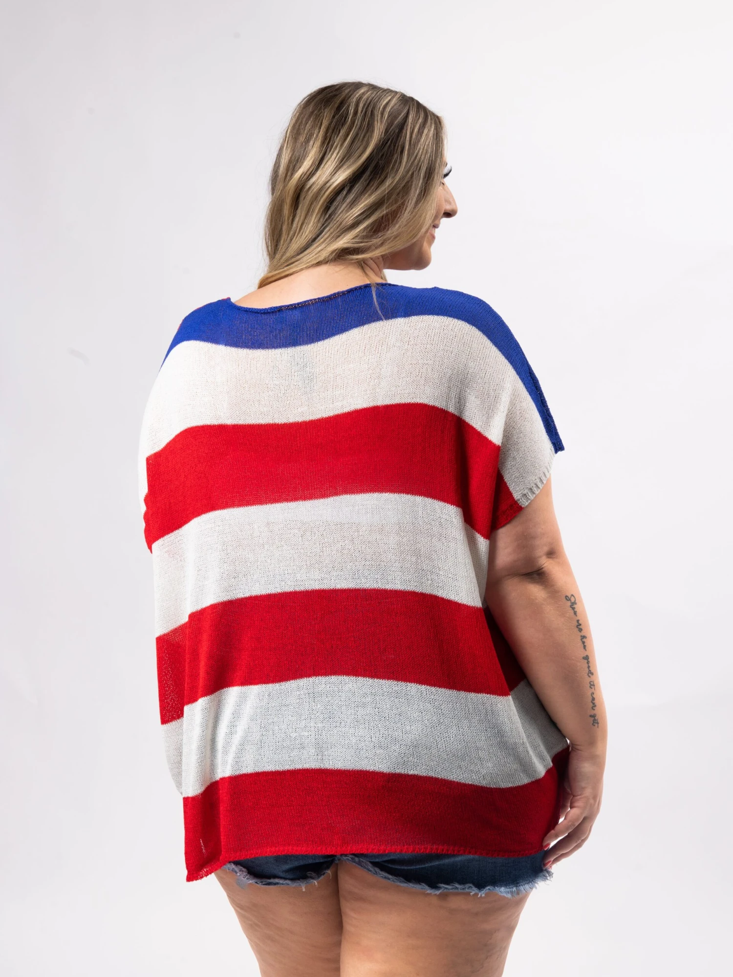Erin is 5’9, 36C bra, typically wears size L/XL in tops and 14/16 in denim. Wearing size 1X