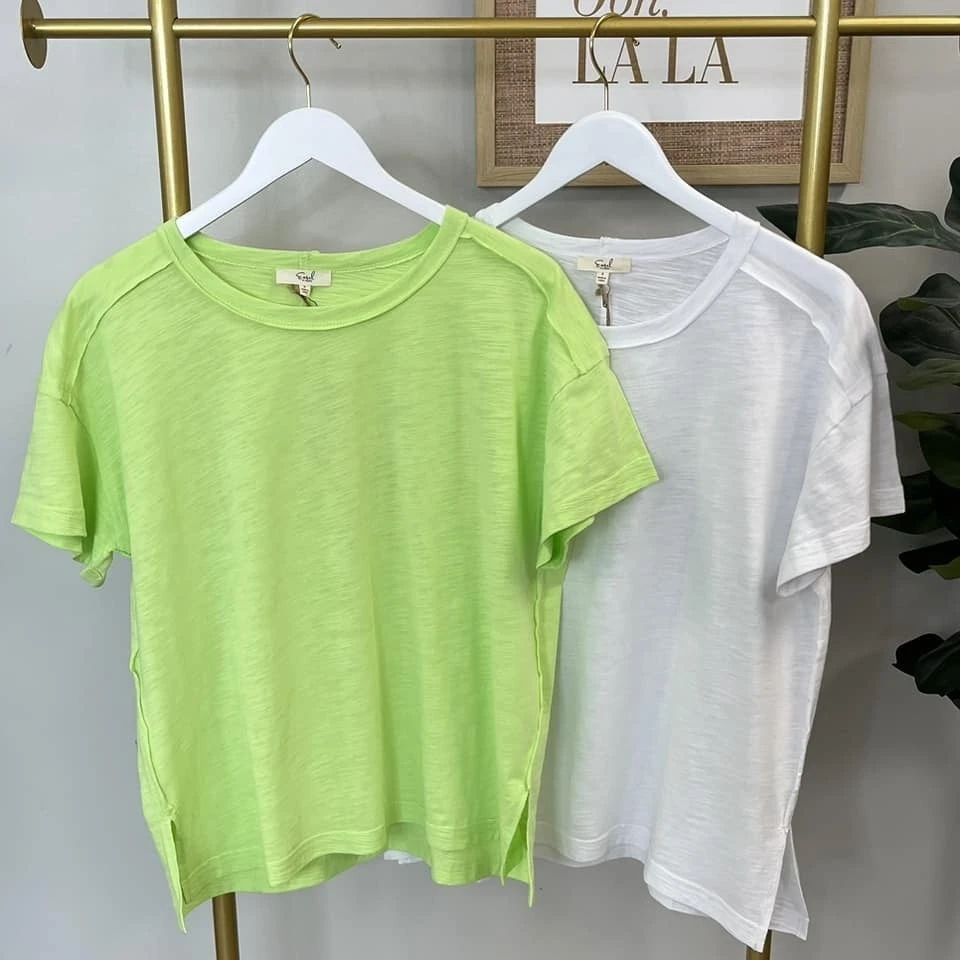 Features: Round Neck, Short Sleeves, Side Slits