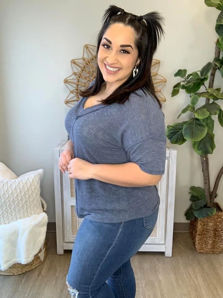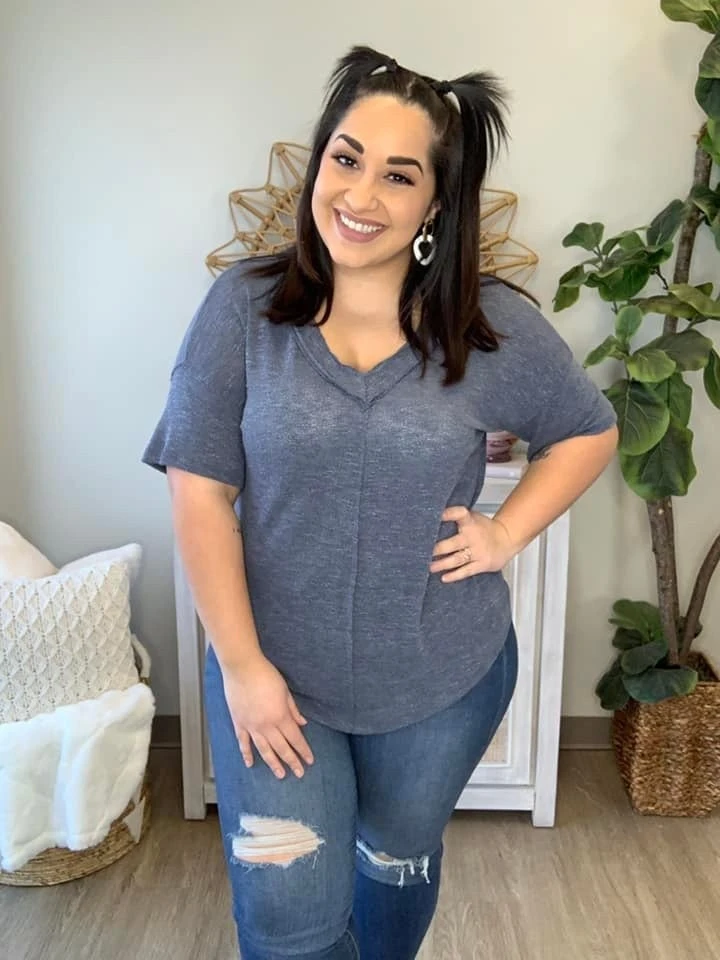 The “Built In Comfort Top” has arrived! This super trendy v-neck belongs in your closet! You can’t go wrong with the curve hem and simple look! Be sure to snag one before they sell out!