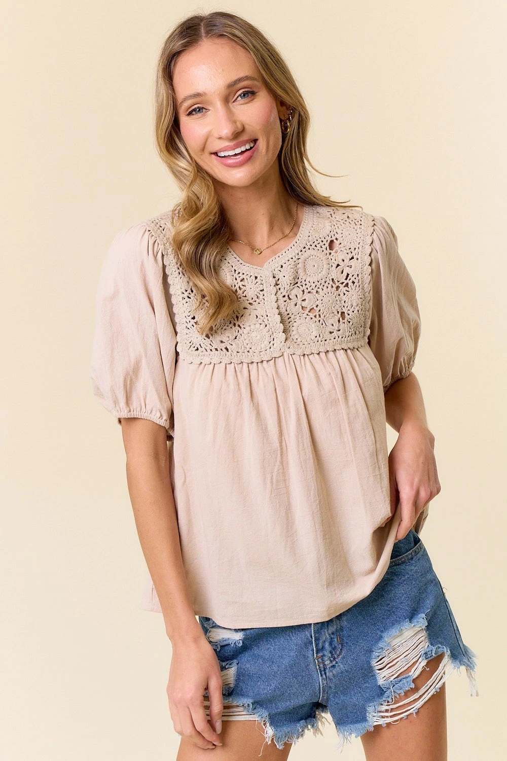 Features: V-Neck, Puff Sleeve, Short Sleeves