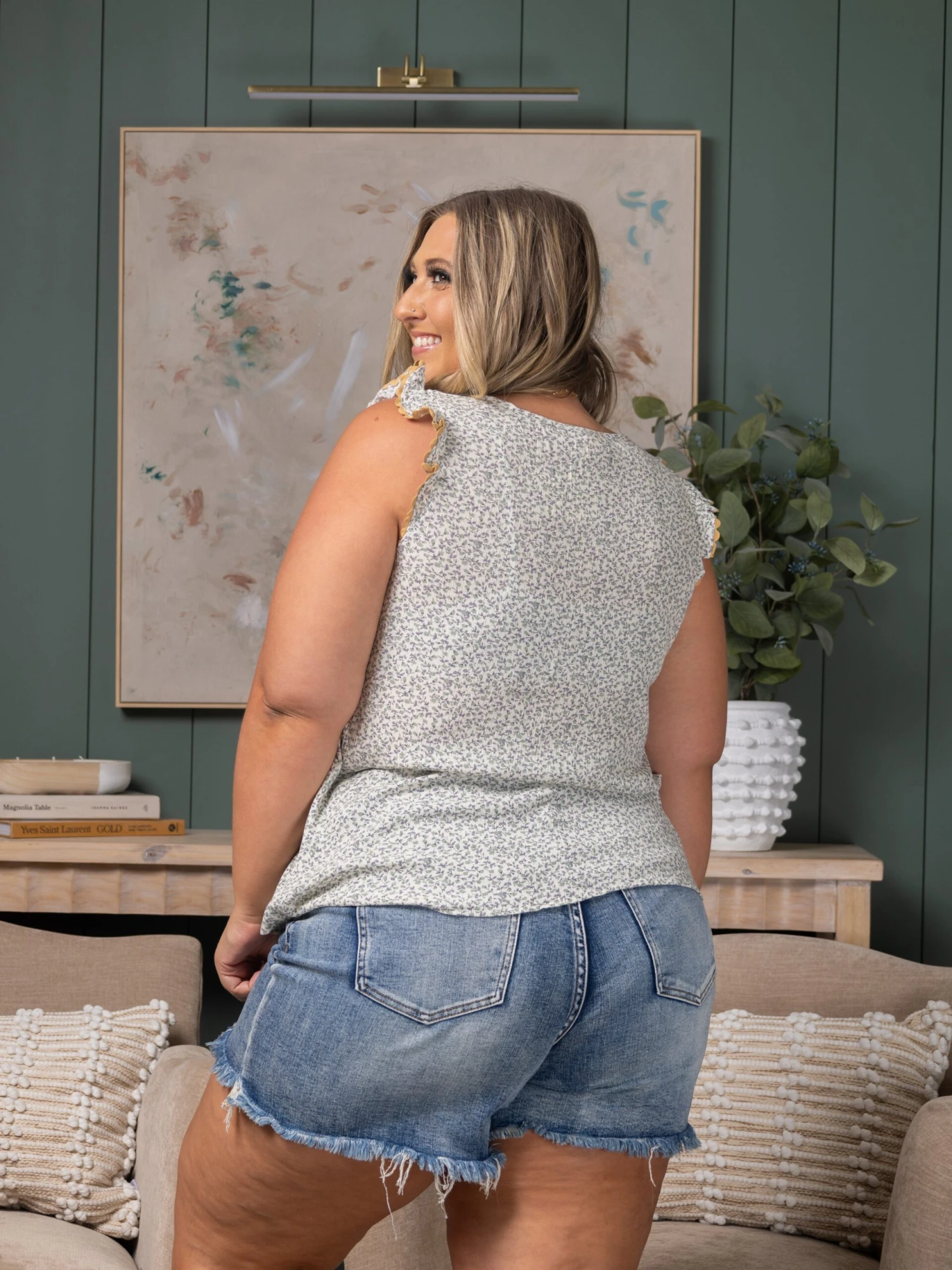 Erin is 5’8, 36C bra, typically wears size L/XL in tops and 14/16 in denim. Wearing size L