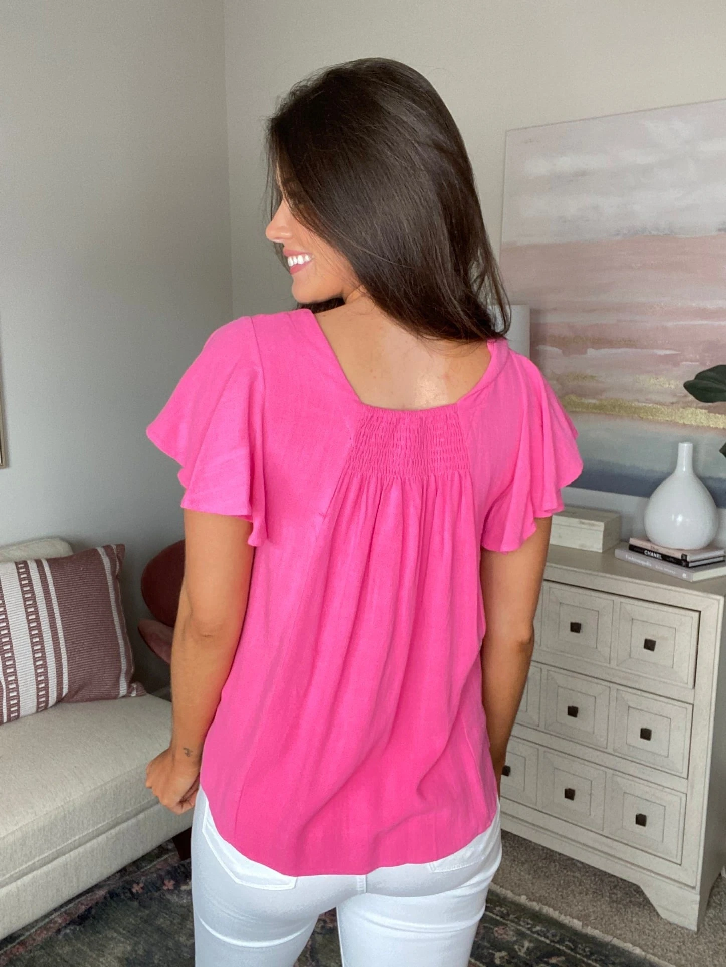 The “Dreaming Of It Top” has arrived! This adorable summary down top is a must-have for your spring and summer wardrobe! We are loving the sleeveless ruffled look and smocked back! Be sure to snag one before they sell out!