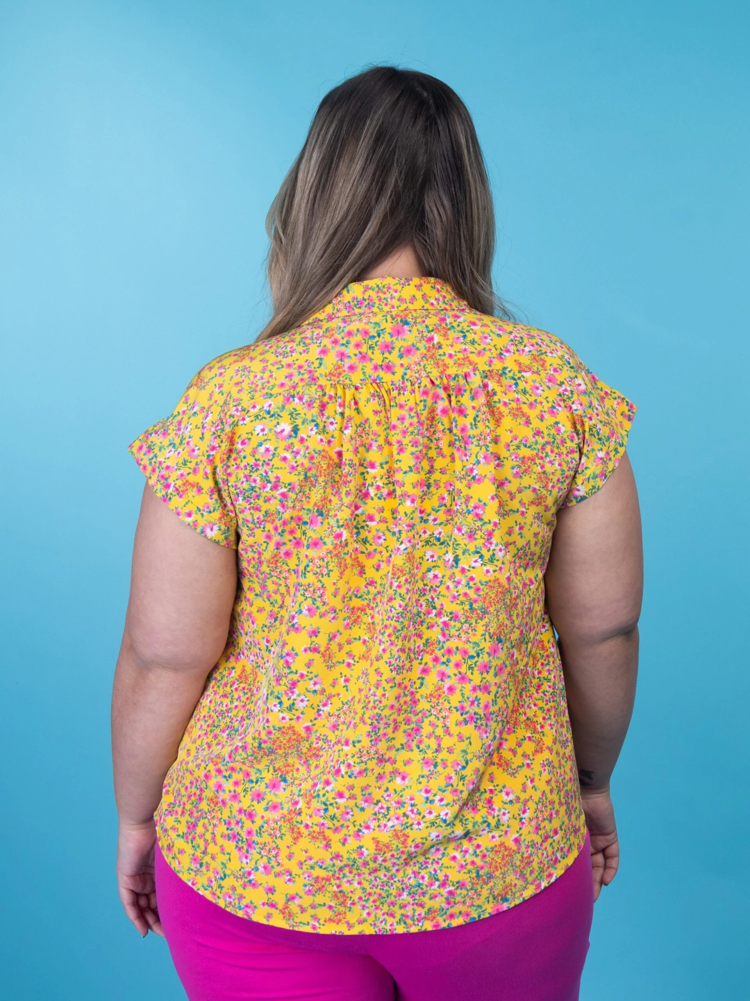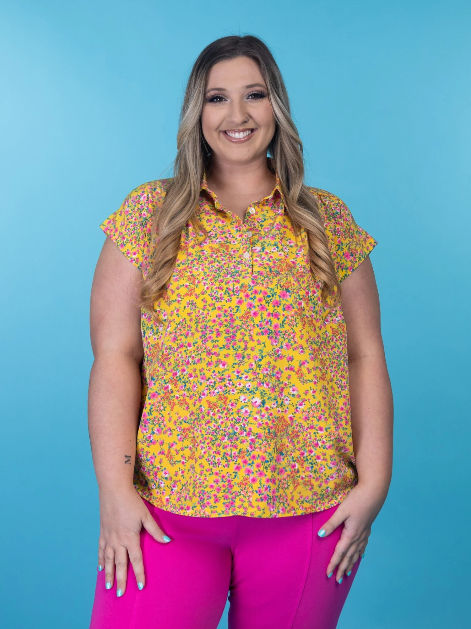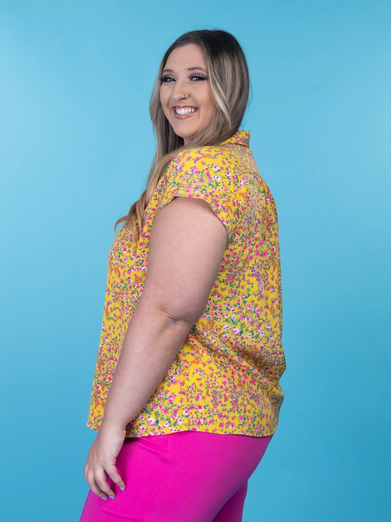 Features: Collar, Cap Sleeves, Button Detail, Floral Print