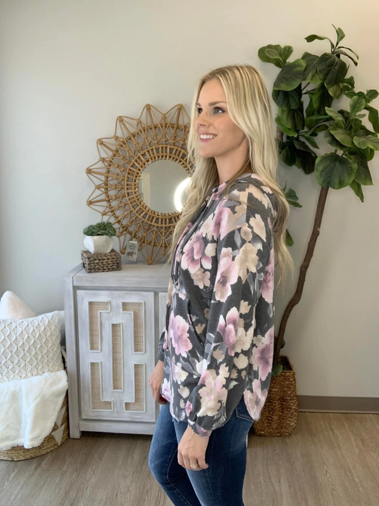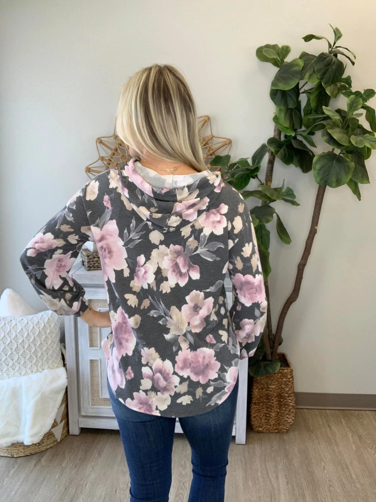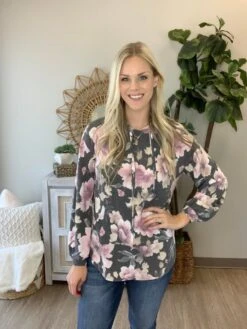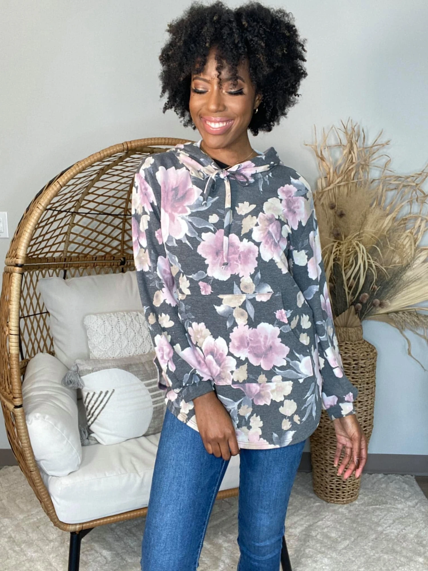 The Epiphany Hoodie is here! This floral print is a must have!! The possibilities are endless with this number! Pair her with some denim for a precious transitional look! Snag one today!
