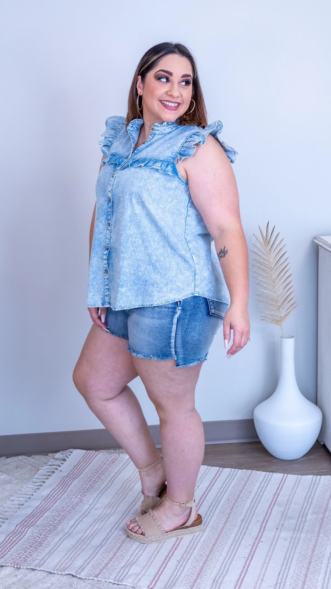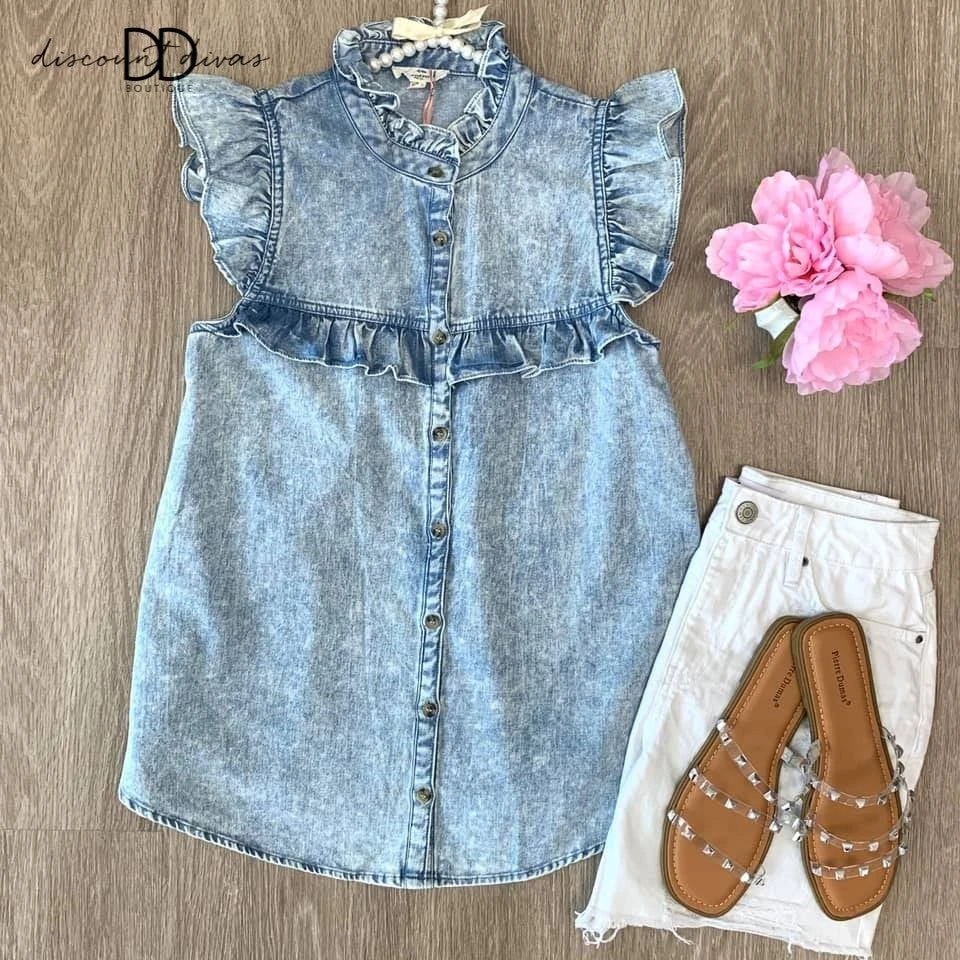 How adorable is the Finding Fate top? This denim top has a ruffle sleeve. How will you style this adorable top?