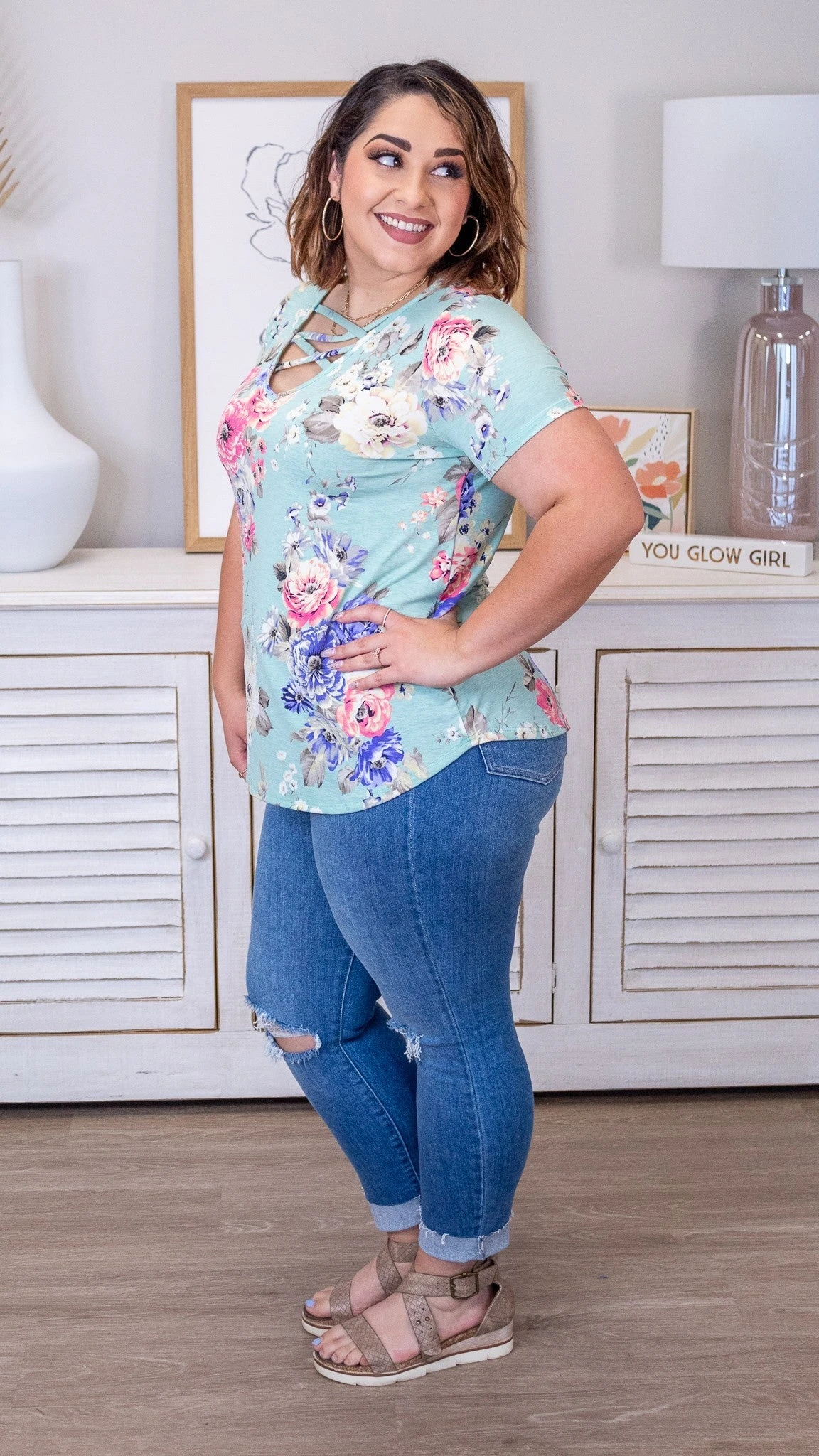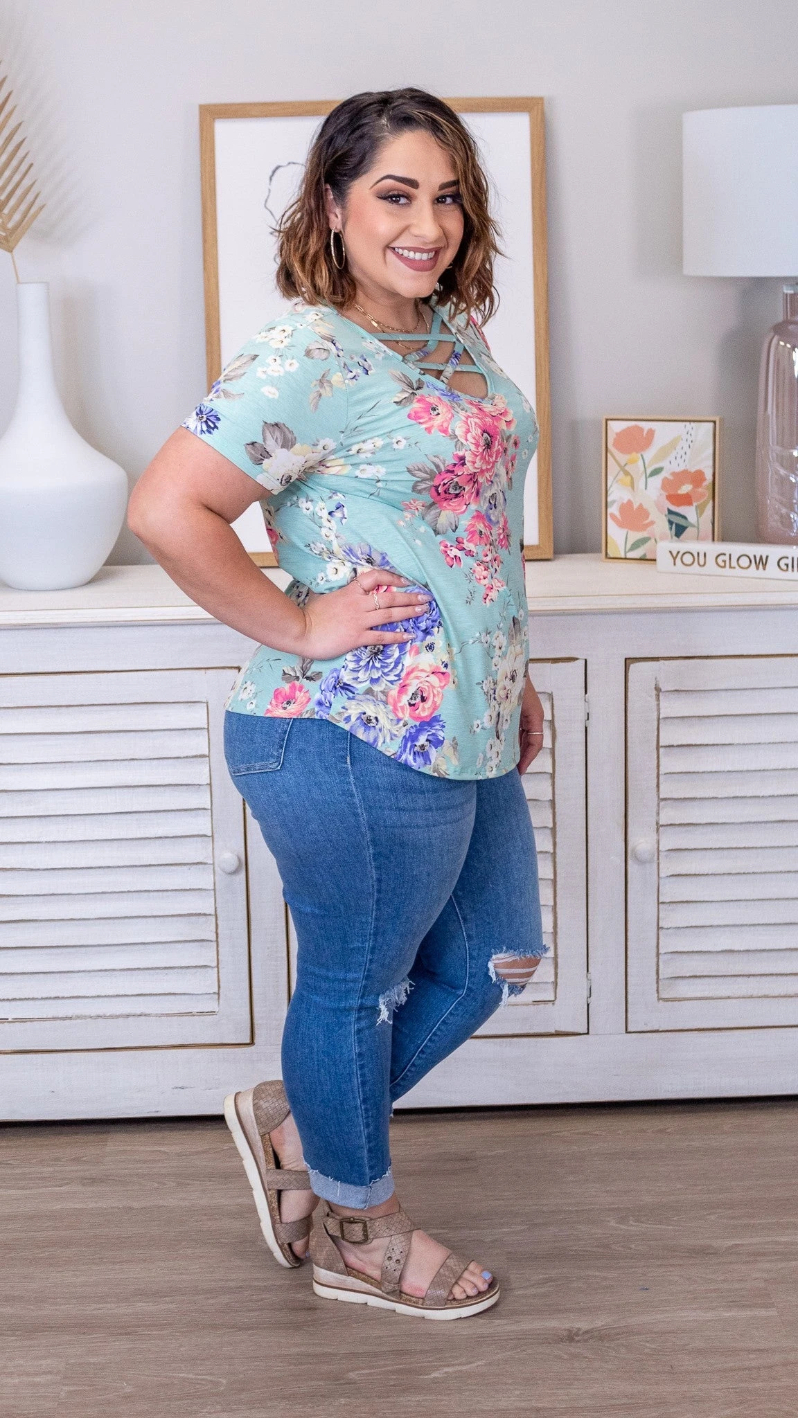 Hey, hey Divas! The Florentina Top is one of the most beautiful and vibrant floral print tops. This top also features a bomb crisscross detail at the neckline. This one is definitely worth the purchase. Snag yours now!!!!