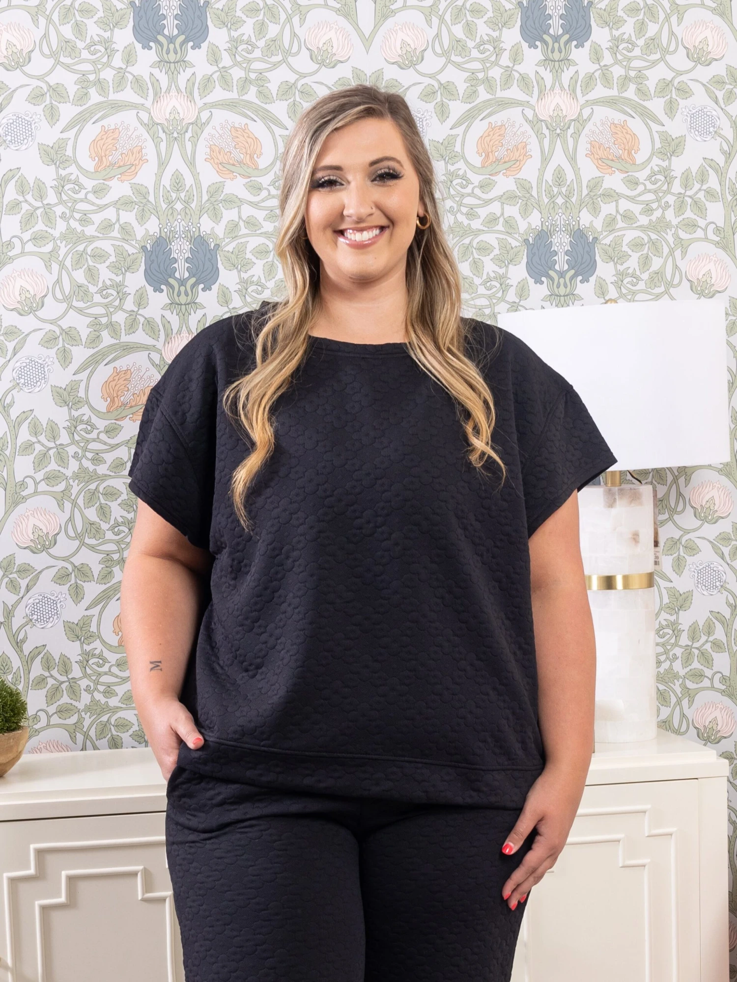Erin is 5’9, 36C bra, typically wears size L/XL in tops and 14/16 in denim. Wearing size 1X