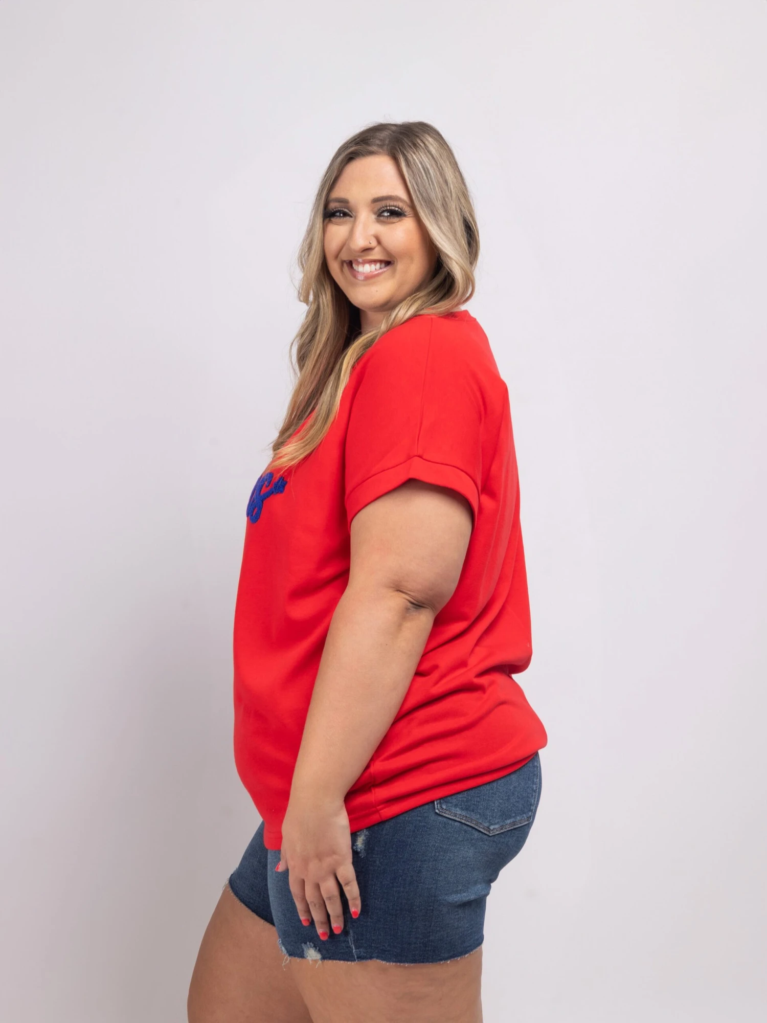 Erin is 5’9, 36C bra, typically wears size L/XL in tops and 14/16 in denim. Wearing size 1X
