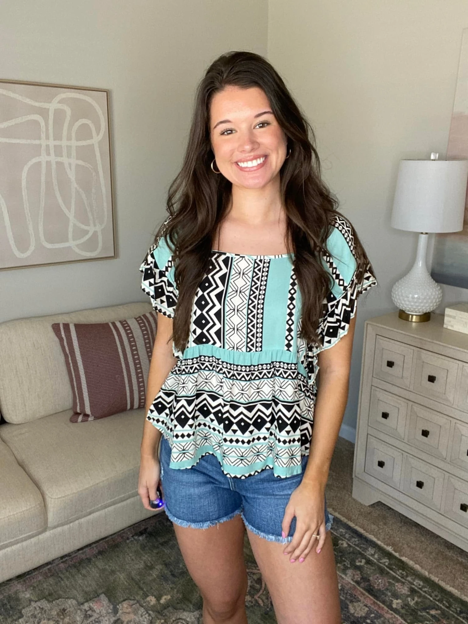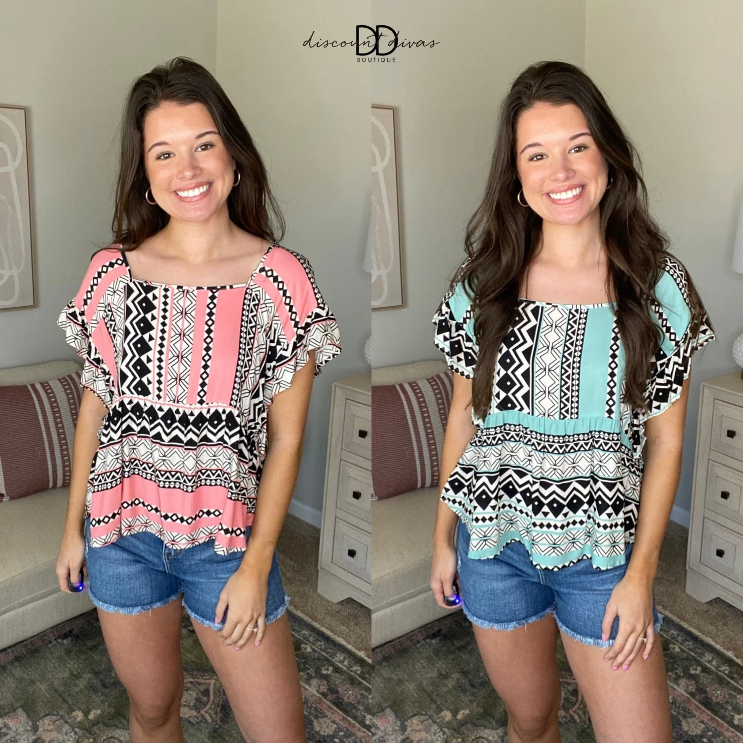 The “Fun and Free Top” has arrived and who doesn’t love a good tribal print top! This top comes in such beautiful color options. Pair it with jeans or shorts for the perfect Spring or Summer look!