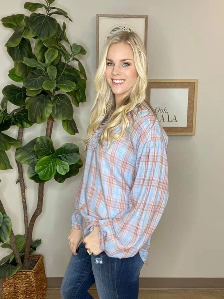 The “Good Idea Top” has arrived! This plaid top is a must-have for your wardrobe! With the V-neck and cute summarys, you can’t go wrong! Pair this with jeans and booties for a super trendy chic outfit! Be sure to snag one while you can!