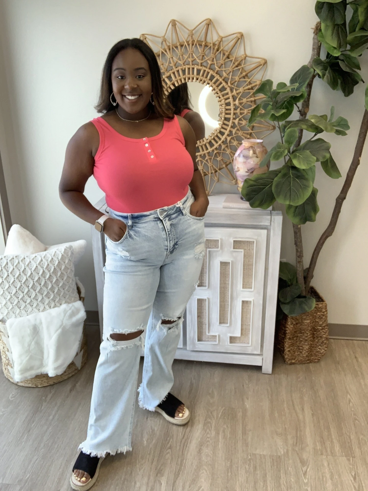 The “Great Timing Top” has arrived! This round neck top is a must have! With a ribbed texture top is simply stylish! Pair with denim or shorts the possibilities are endless! Snag one before they sell out!