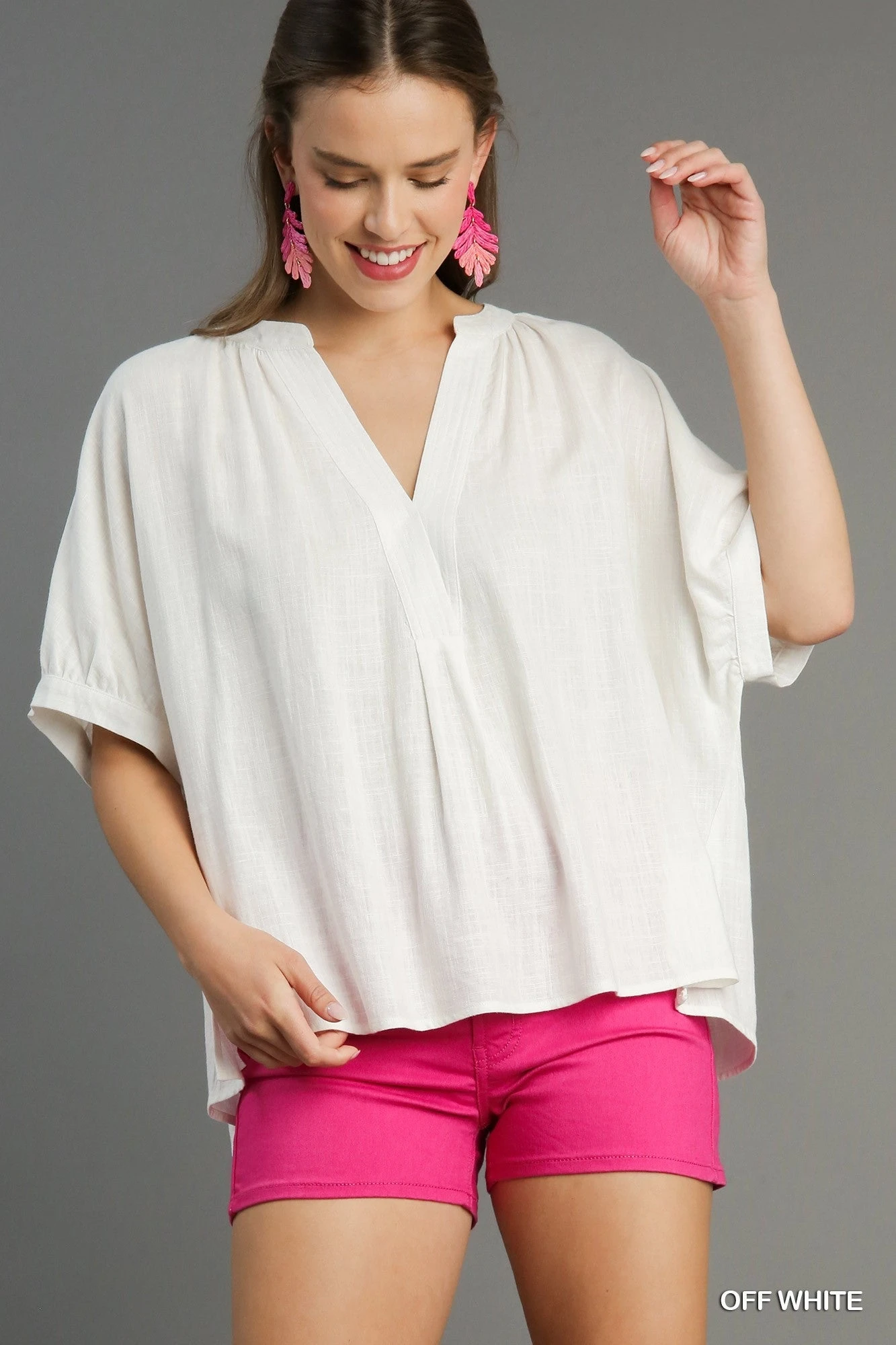 Features: V Neck, Short Sleeves, Oversized