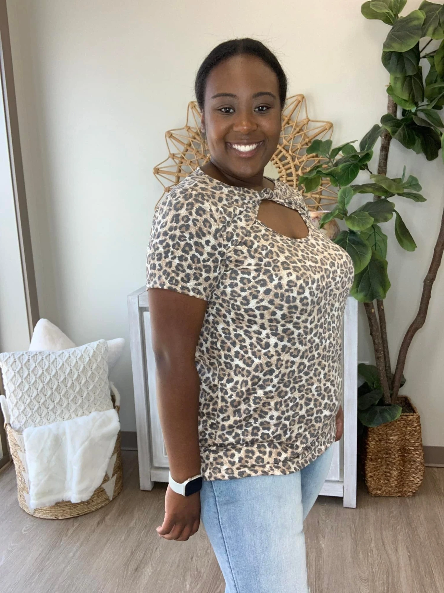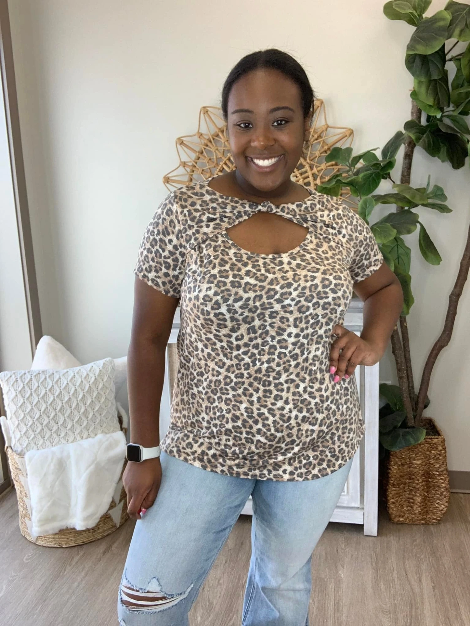 The “Mind Your Manners Top” has arrived! This leopard print top is just what you need! We are loving the cut out with the front knot! Be sure to snag one before they are gone!