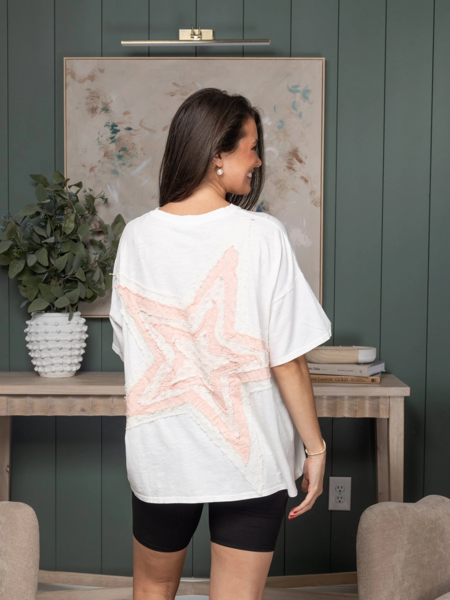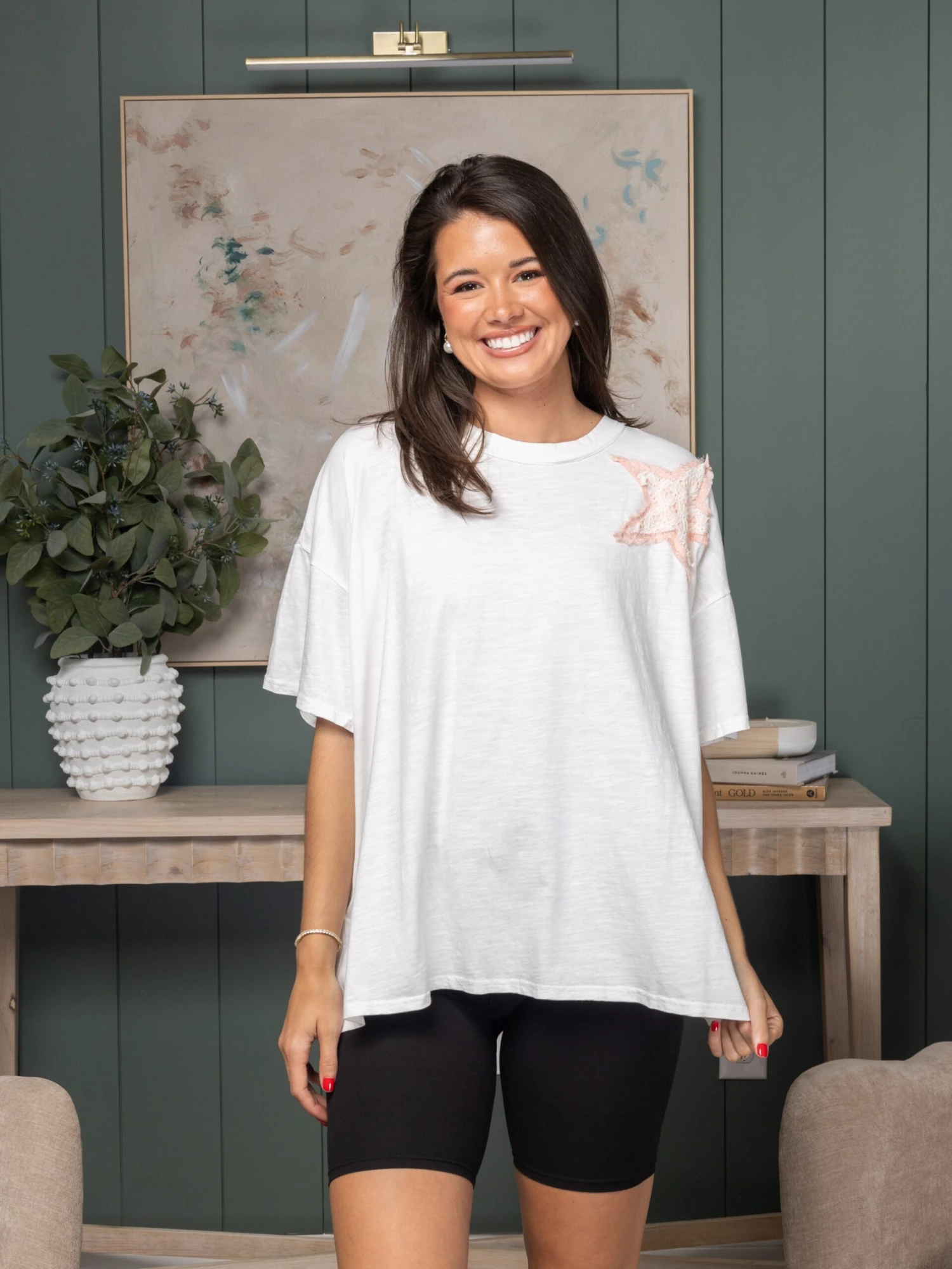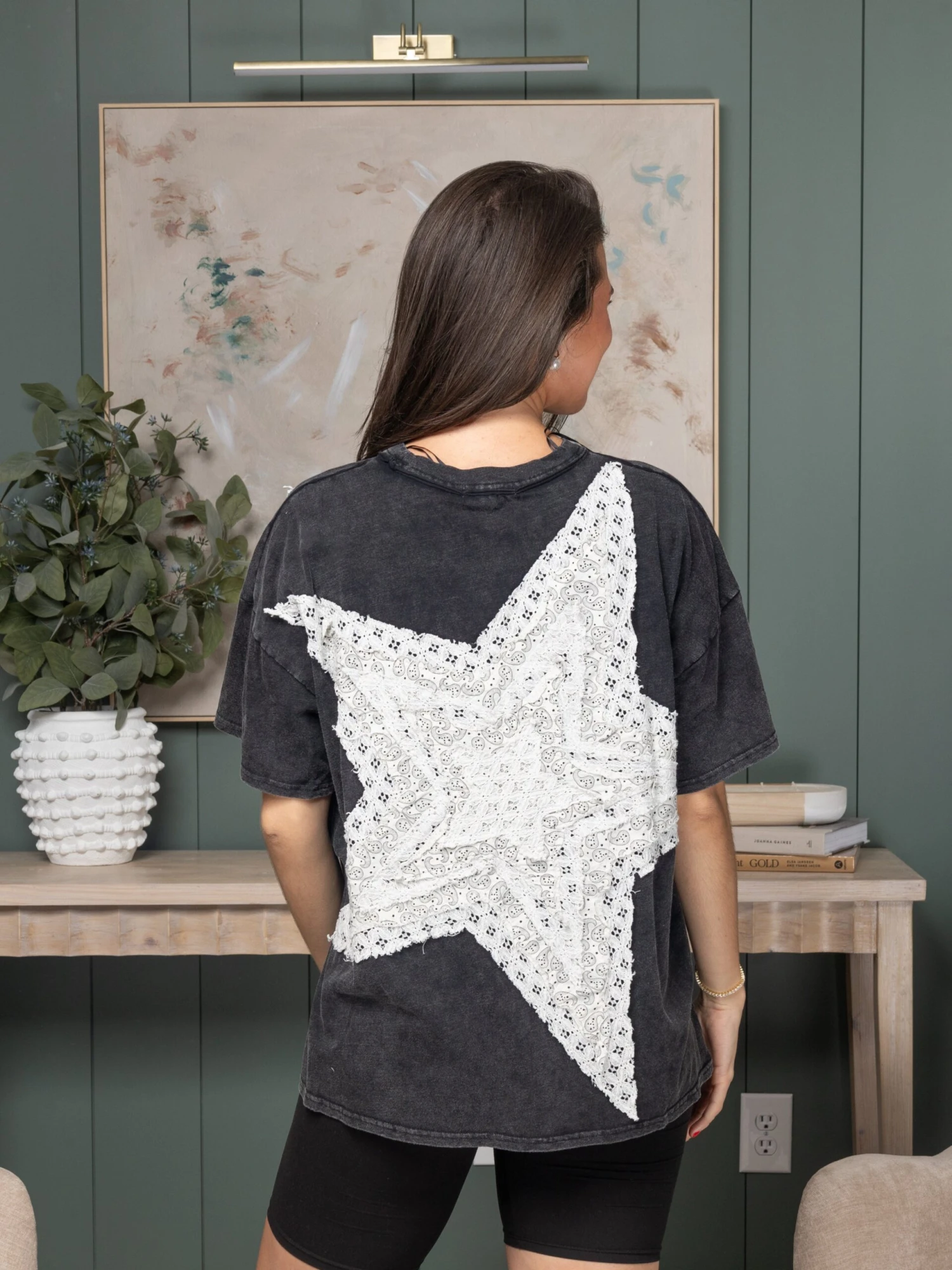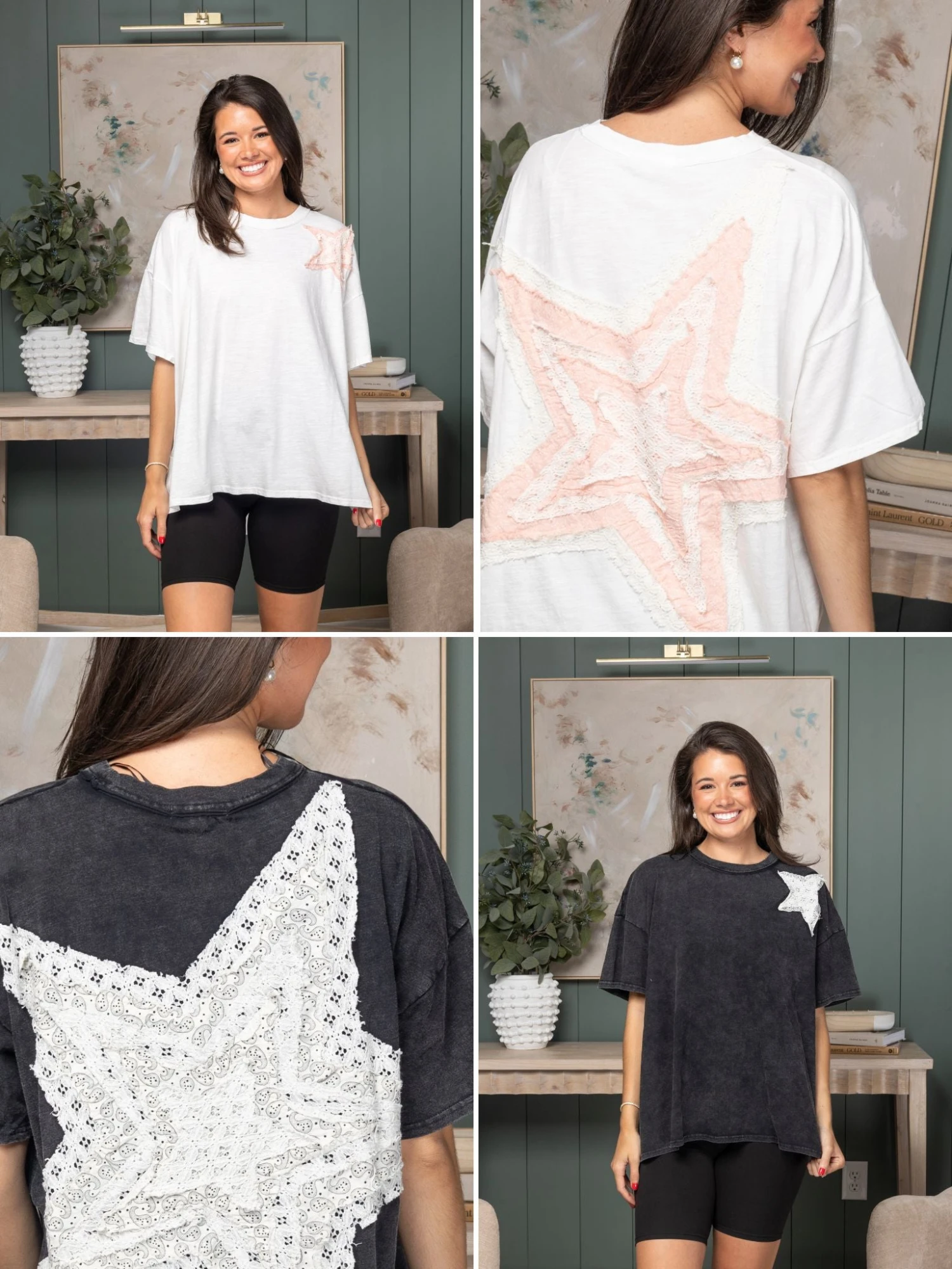 Mineral Washed Cotton Star Patch Short Sleeve Top | S-XL Blue Velvet BE