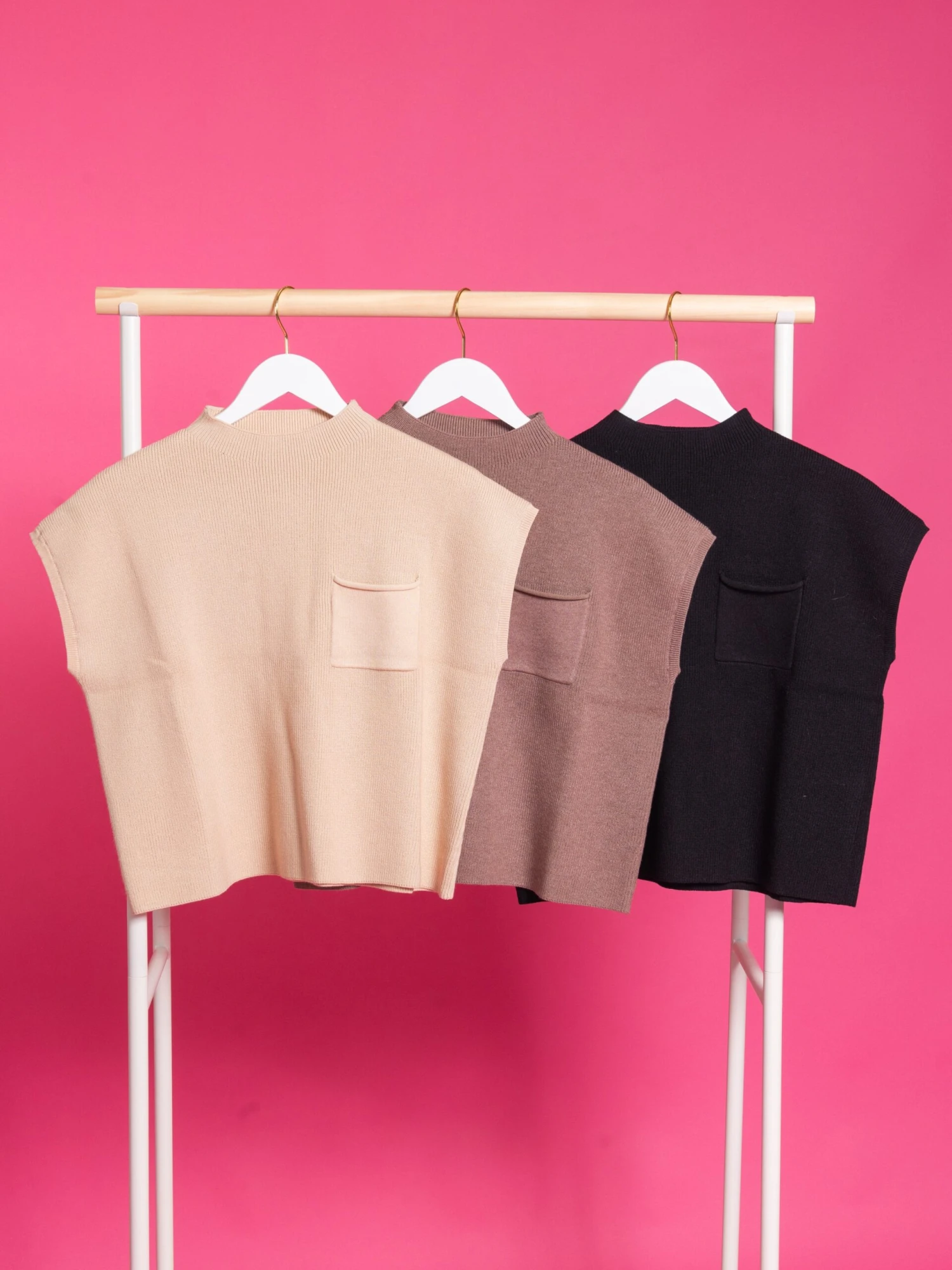 Features: Mock Neck Drop Shoulder Short Sleeve Knit Top