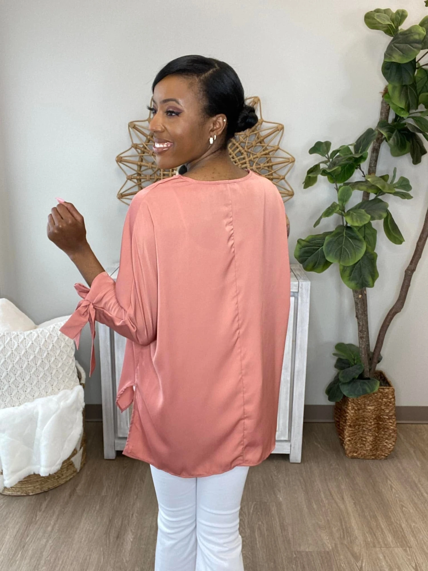 The “Never Again Top” has arrived! This super cute classy top belongs in your wardrobe! With the tied sleeves and side slits, you can’t go wrong! Be sure to snag one before they are gone!