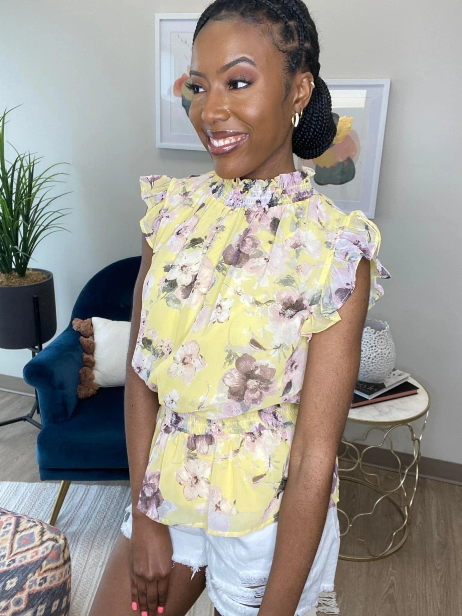 The “Now Come On Tank” has arrived! This tank is screaming spring! We adore this yellow floral print look! You can’t go wrong with a good smocked top! Be sure to snag one before they are gone!