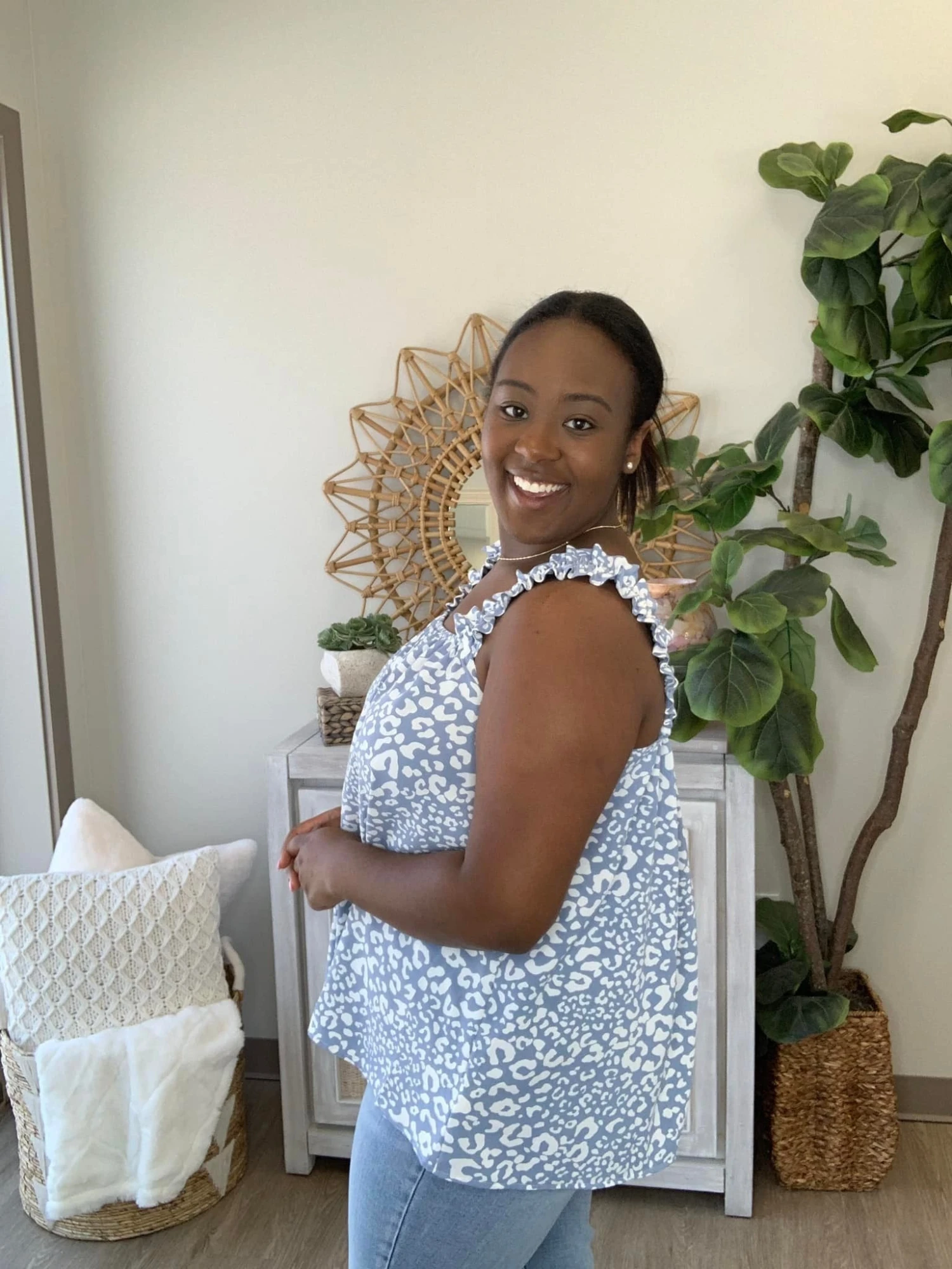 Emry: 5’5’ XL/L in tops and dresses, Size 14 In bottoms