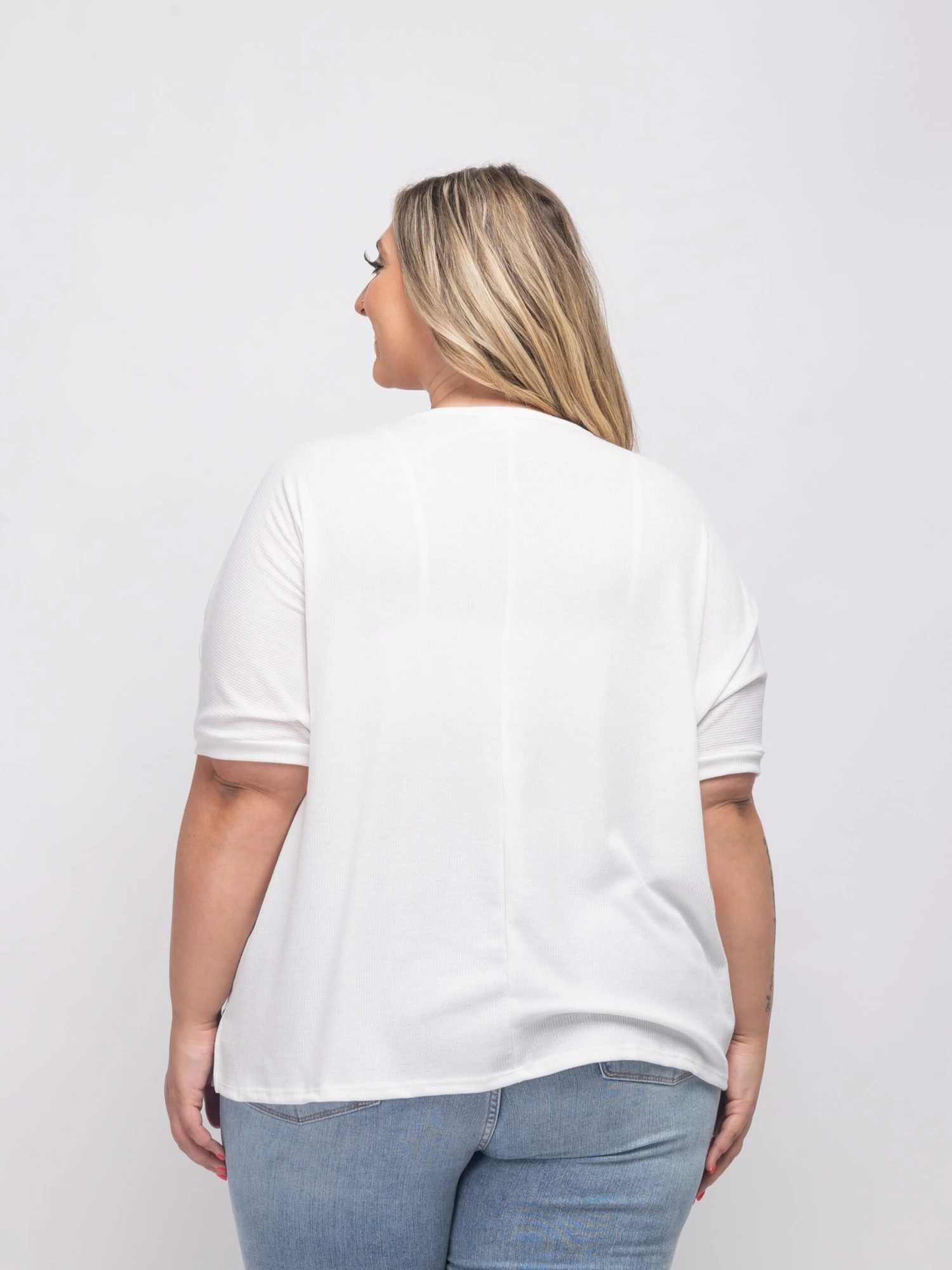Erin is 5’9, 36C bra, typically wears size L/XL in tops and 14/16 in denim. Wearing size L in regular photos but size Small in side by side photo.
