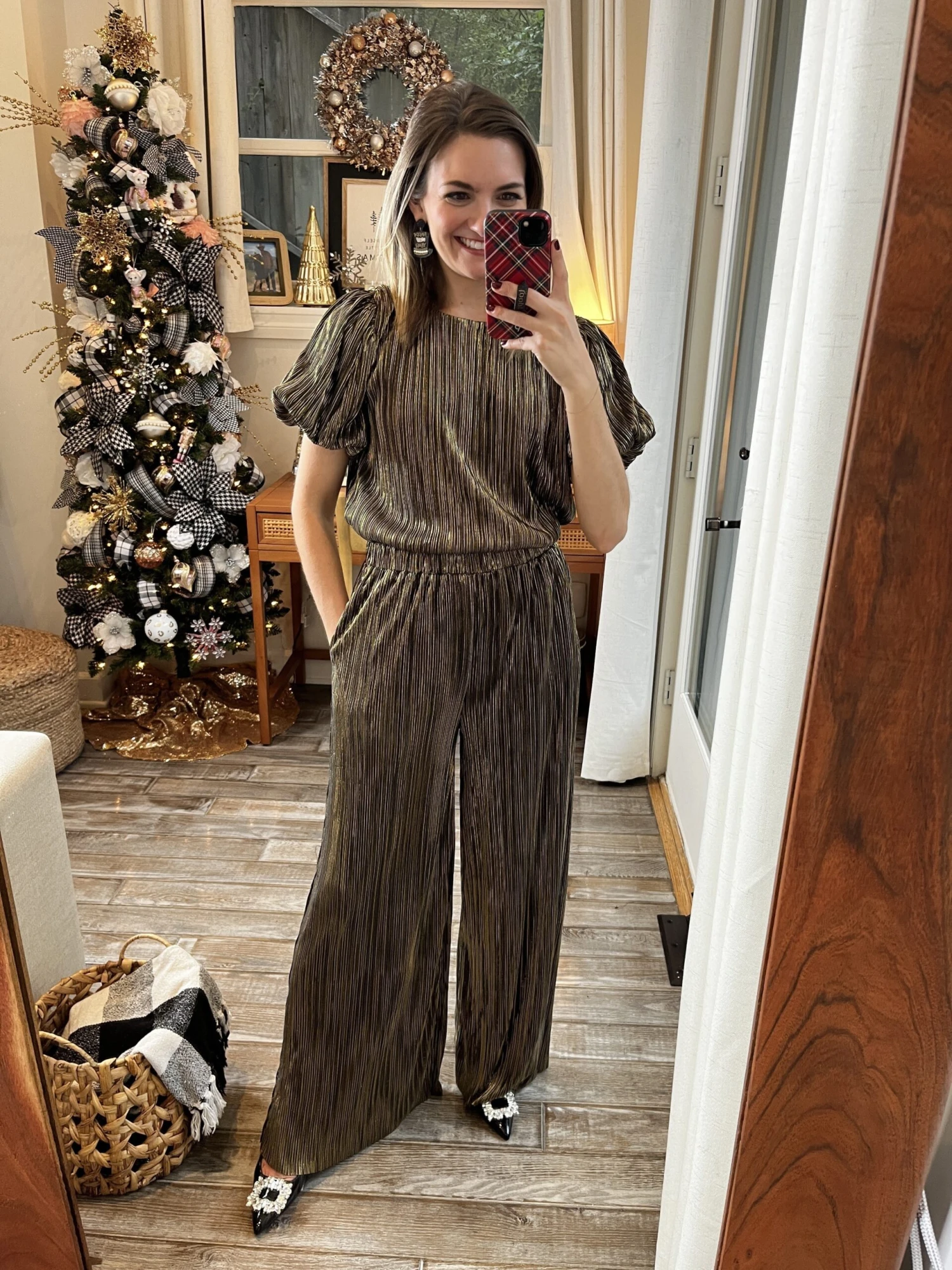 Puff Sleeve Metallic Stripe Pleats Top| S-L *Final Sale*