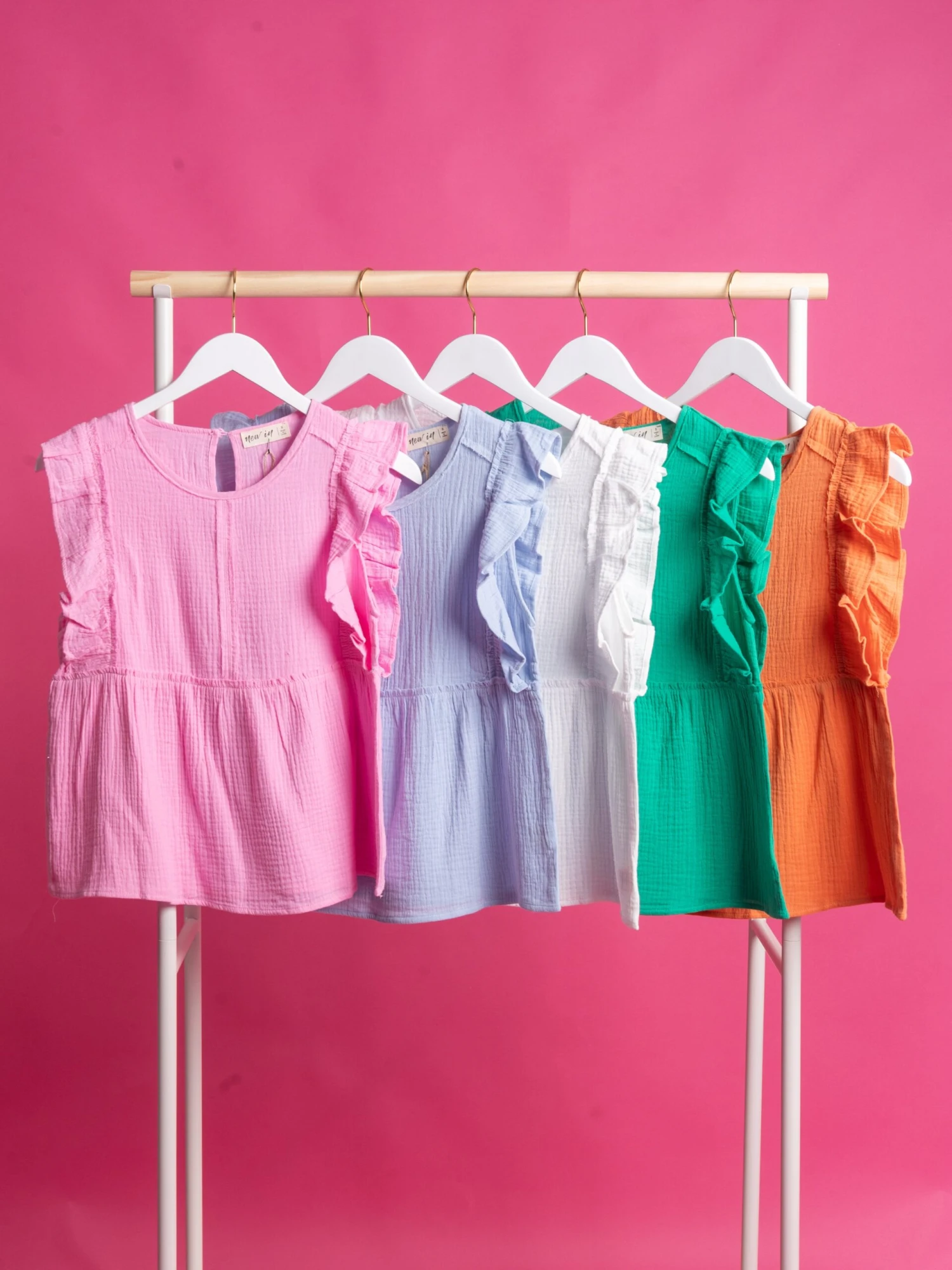 Ruffle Sleeve Babydoll Cotton Gauze Top | S – L