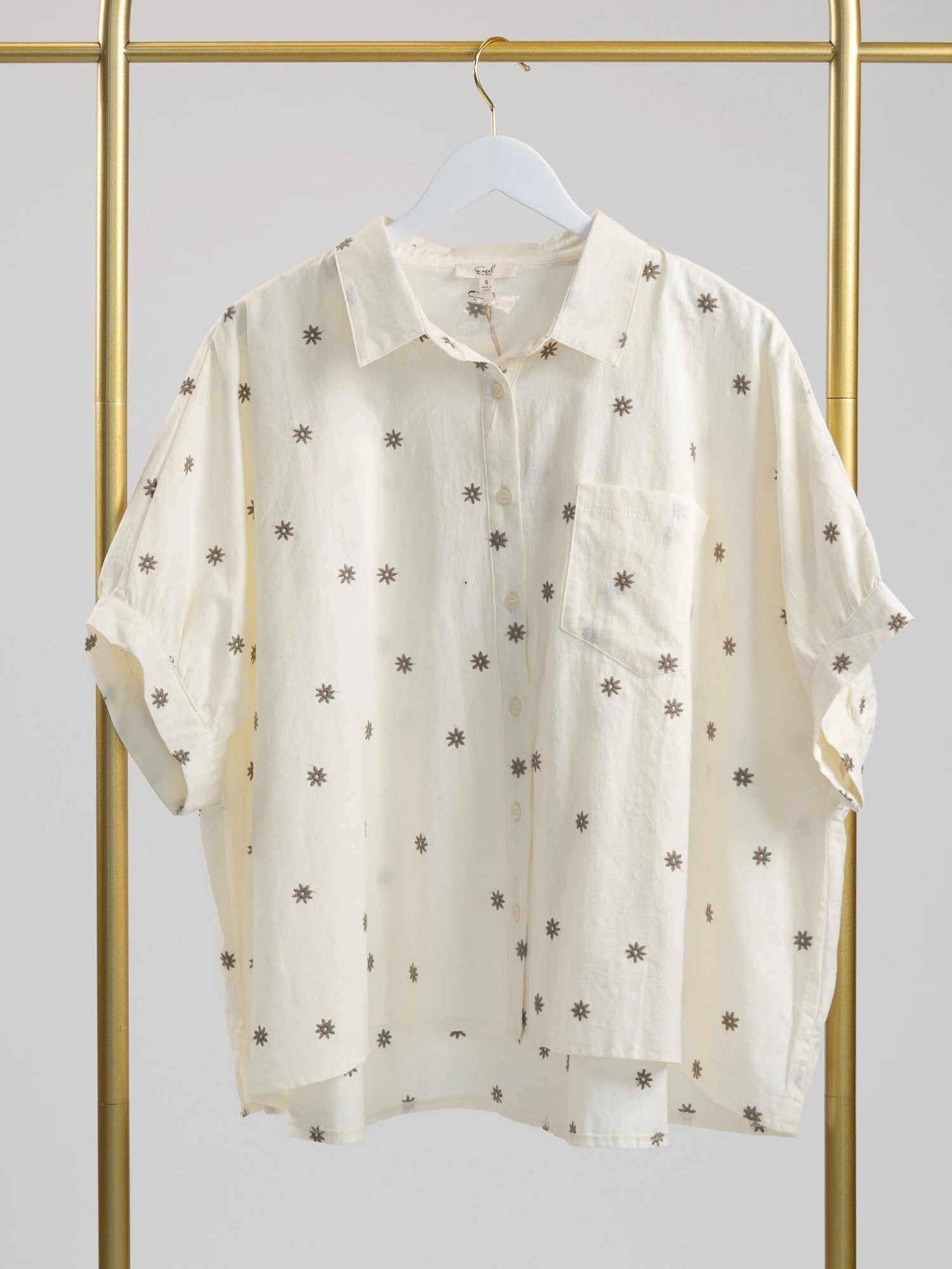 This super cute summary-down top makes getting dressed so easy, and the embroidered detailing is literally the perfect touch! You know this is just what your wardrobe needs! Snag while you can!