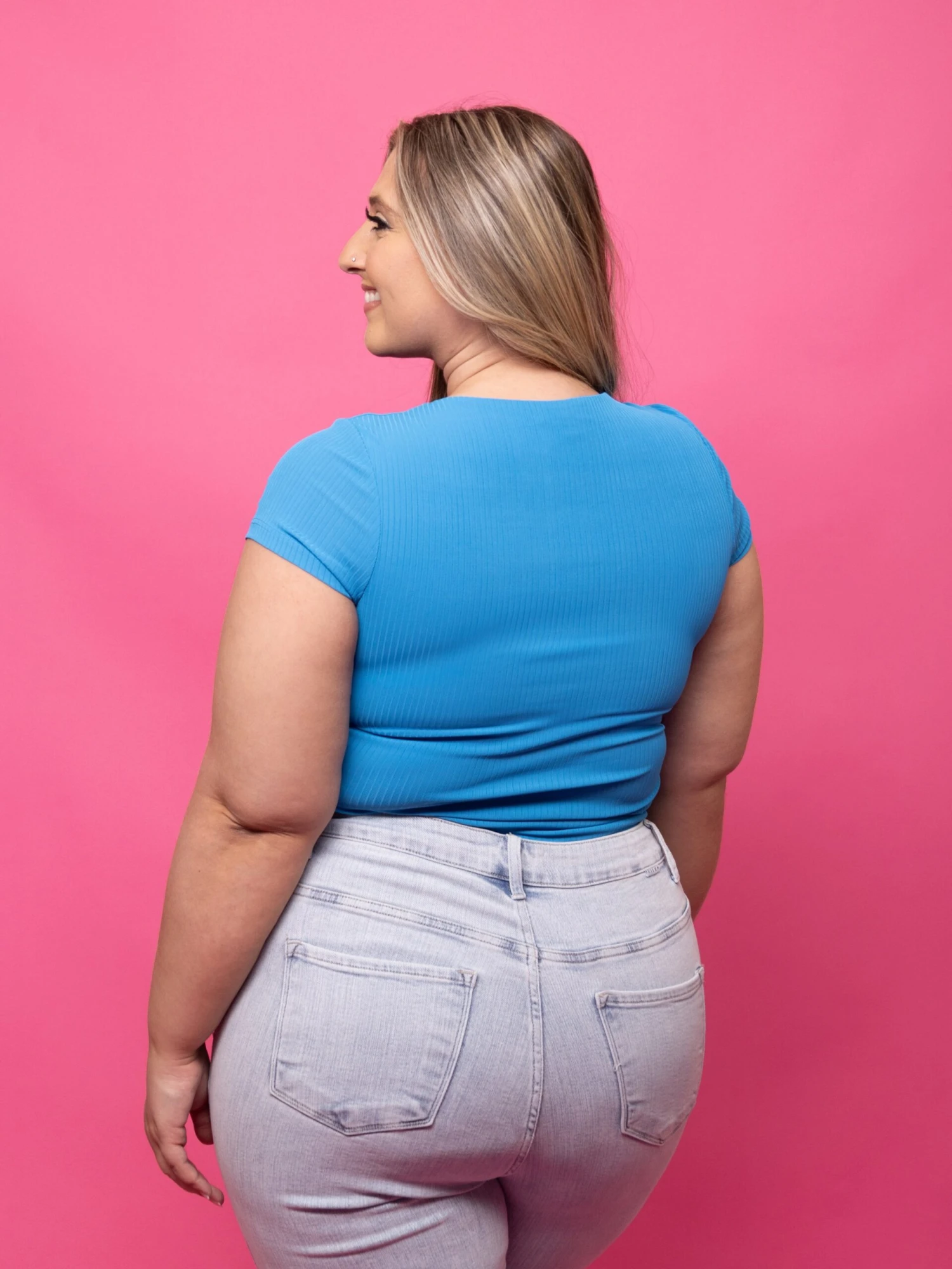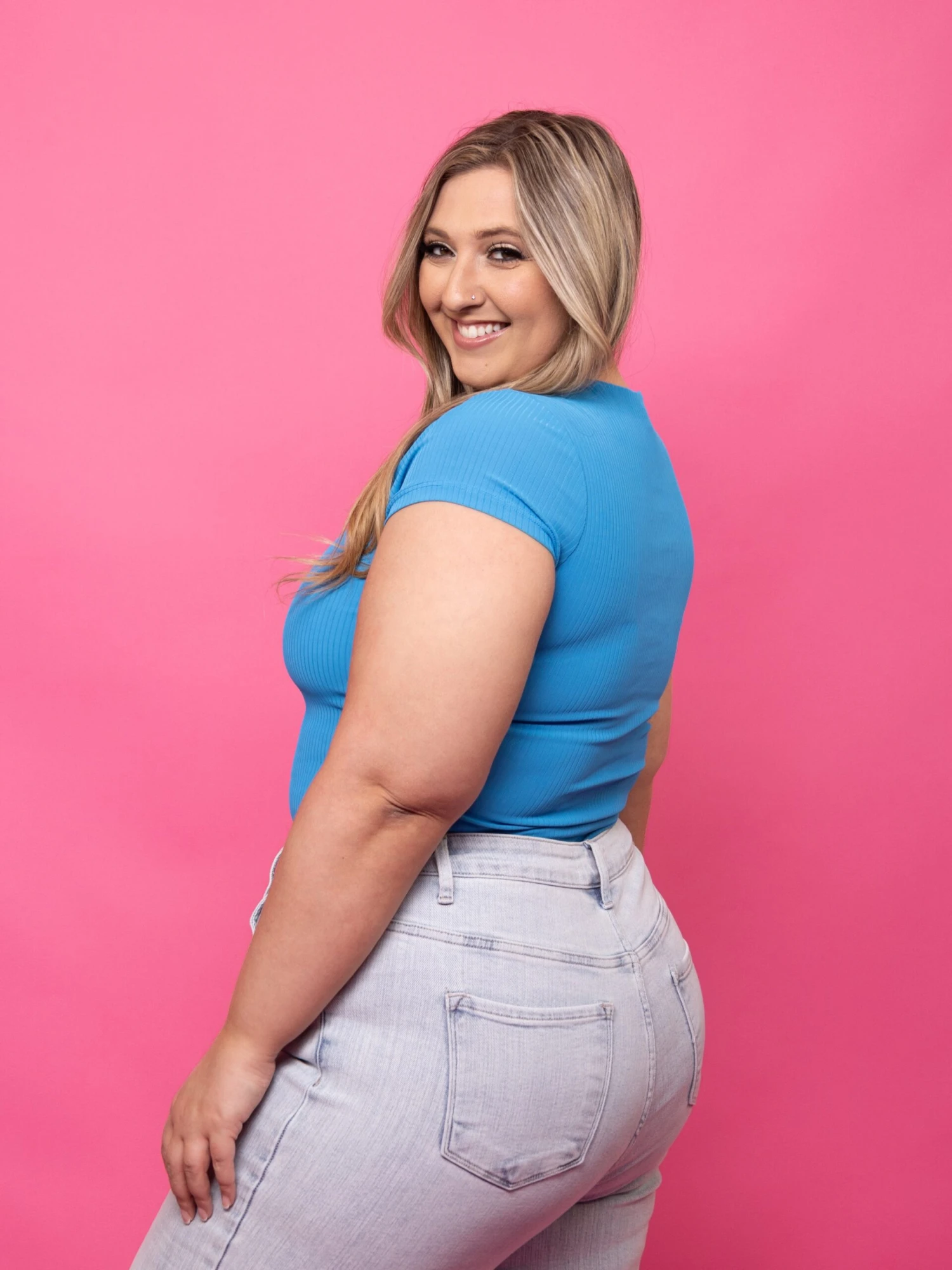 Erin is 5’9, 36C bra, typically wears size L/XL in tops and 14/16 in denim. Wearing size L