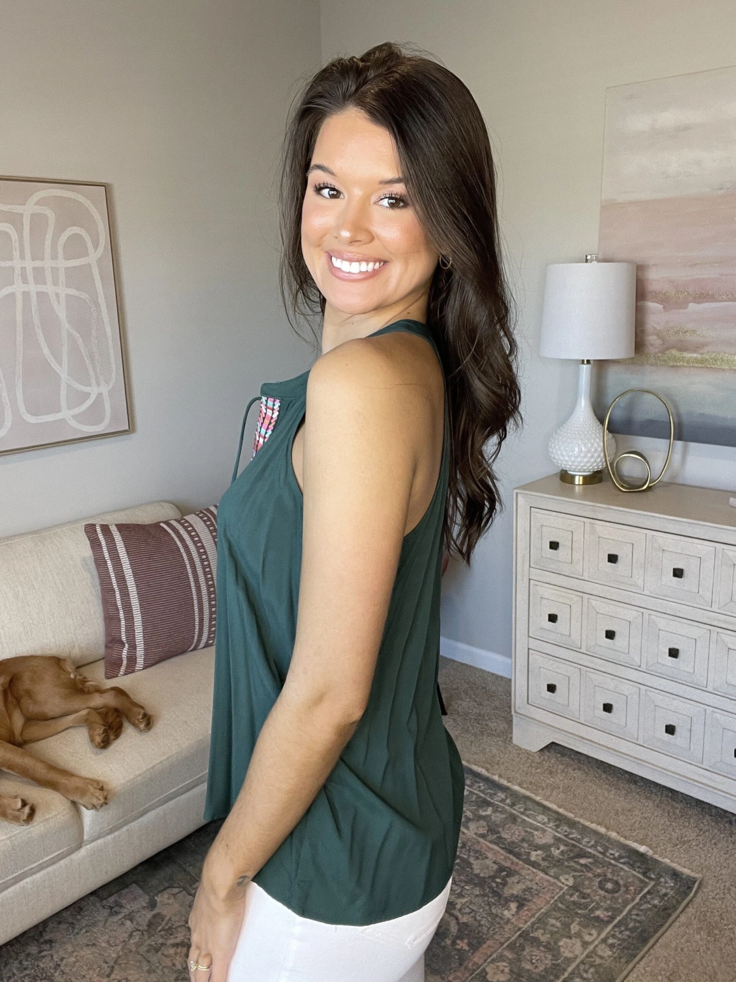 Emry: 5’5 L-XL in tops and dresses, size 14 in bottoms.