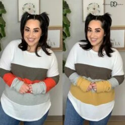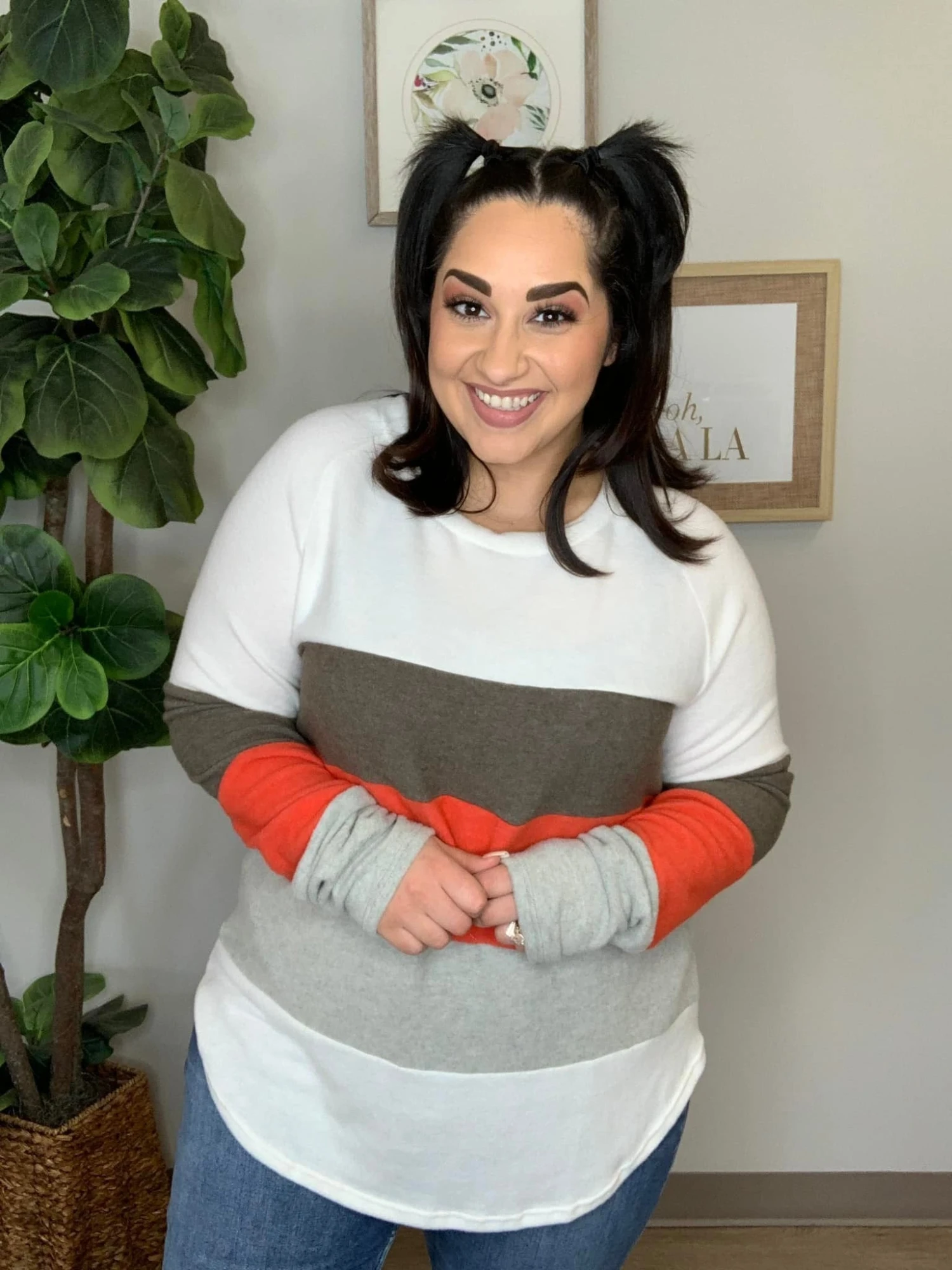 The “Stuck In Your Head Top” has arrived! You need this color block moment in your wardrobe! You can’t go wrong with this number! Be sure to snag one before they are gone!