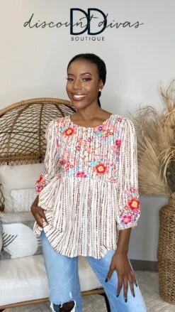The “Sweet Pea Top” has arrived! This striped babydoll top is so precious! The embroidery on this one is amazing! You will be looking your absolute best in this piece! Snag one before they sell out!