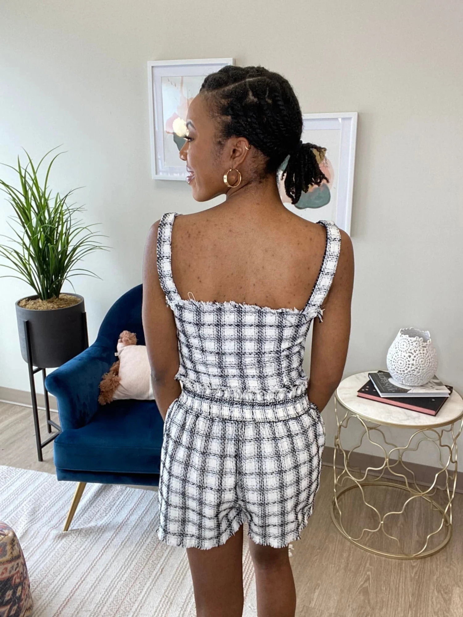 Features: Sleeveless, Tweed Detail, Side Zipper, Cropped