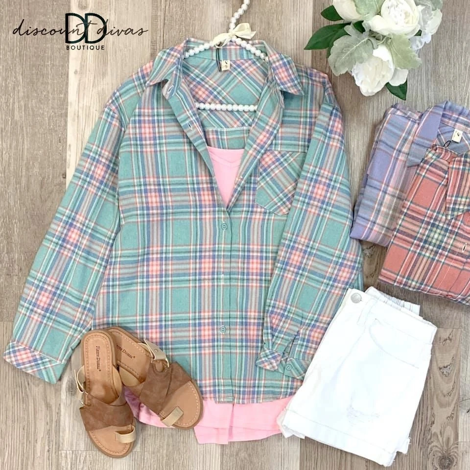 Features: Long Sleeve, Button Down, Plaid Pattern, Button Wrist, Round Hem,Front Pockets