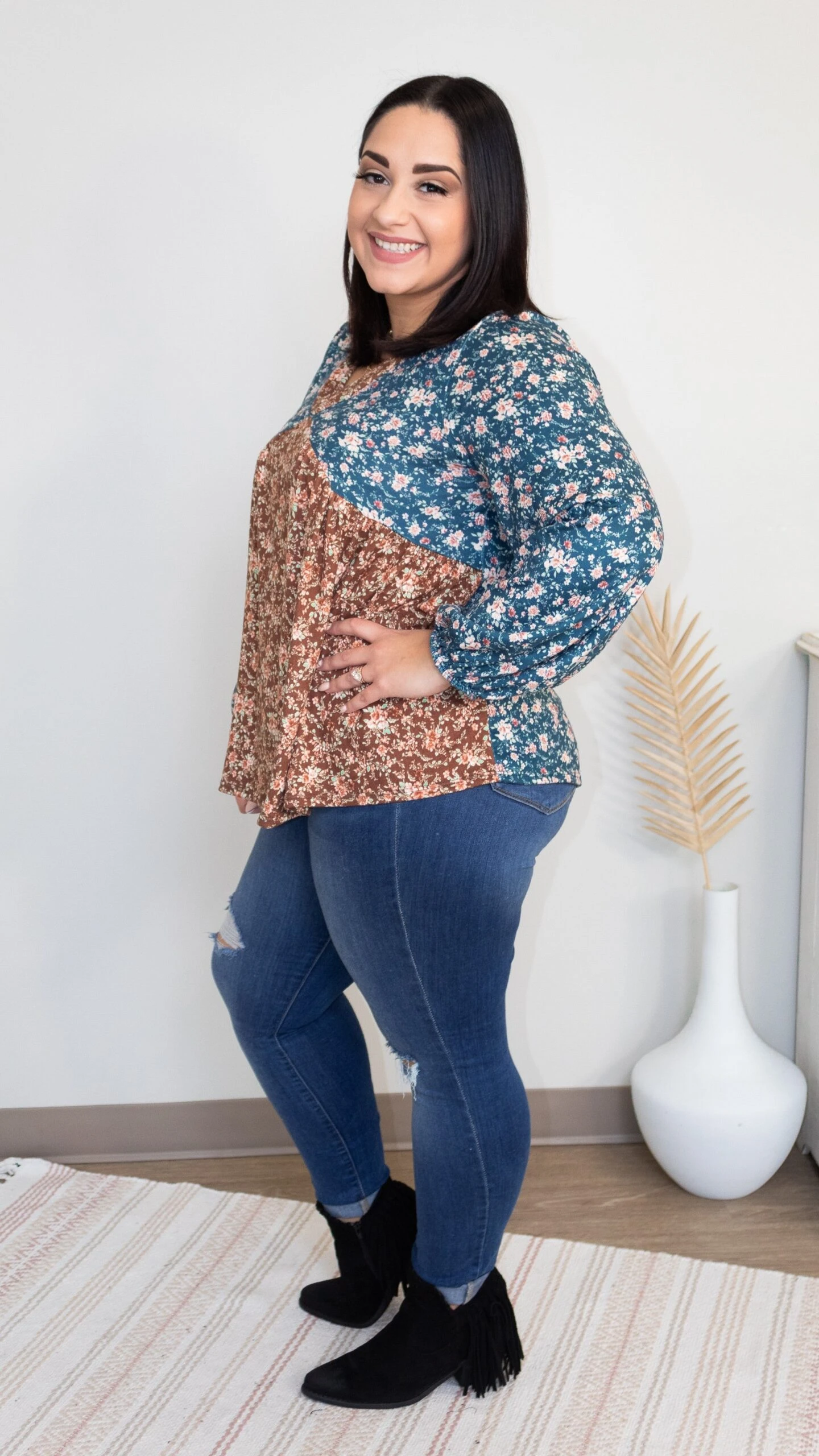 The Think It Over Top is here! The floral print on this piece makes it perfect for the fall! We love a good babydoll top and this one does not disappoint! Get one your your fall wardrobe today!