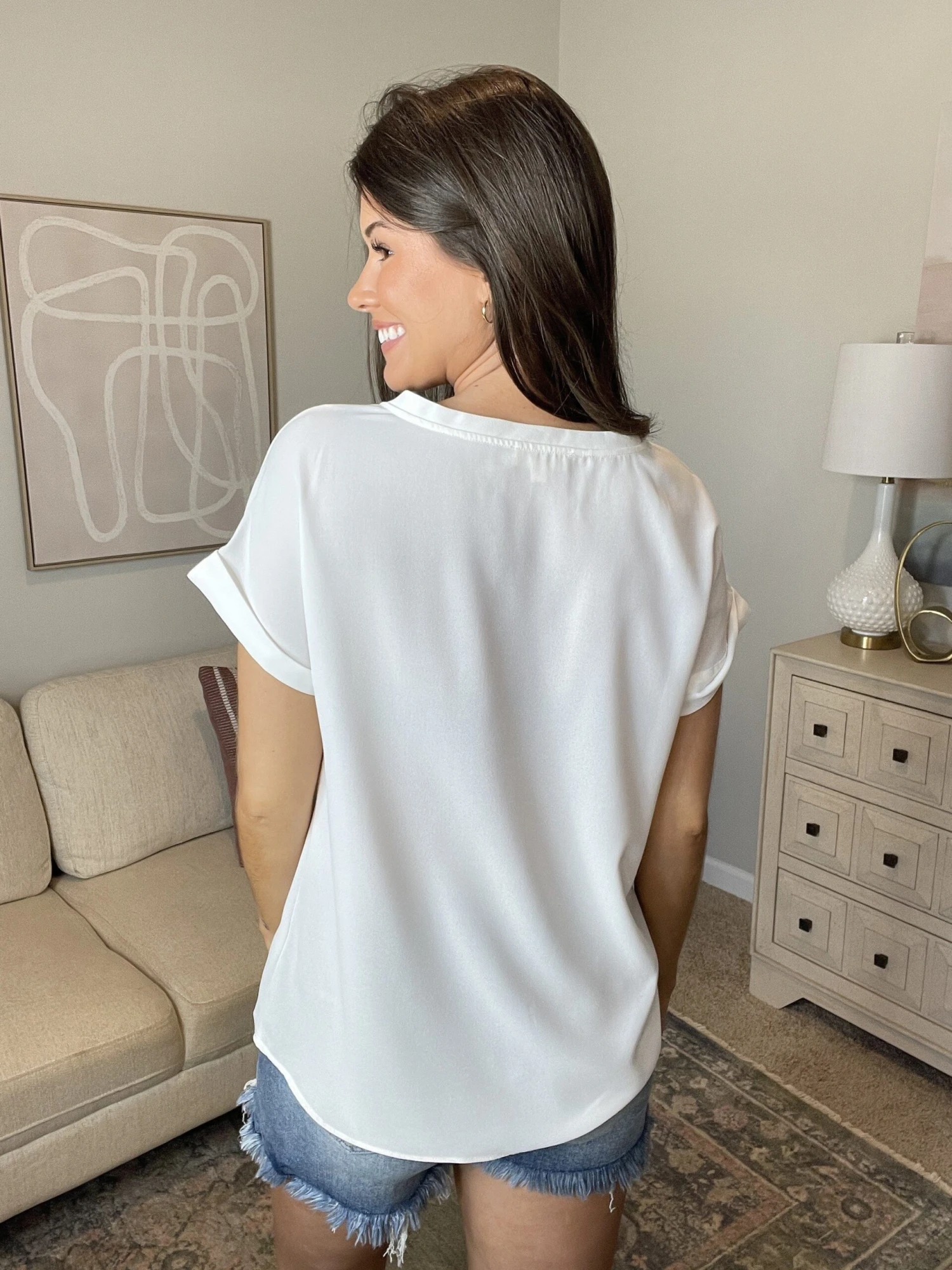 Features: V Neck, Short Sleeves, Solid Top