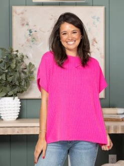The “Tropical Love Top” has arrived! This printed top is a must have! This gorgeous pink color adds just the right amount of pop! Pair with denim and sandals for the perfect look! Snag one of these beauties today!