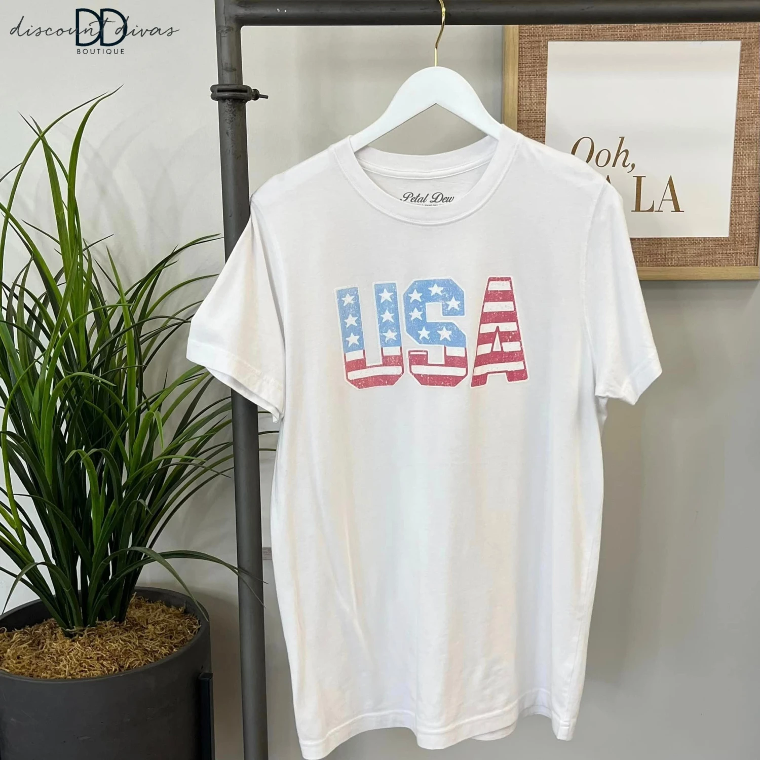 We are loving this USA graphic tee! Perfect for all of our America loving babes! Hurry and snag!