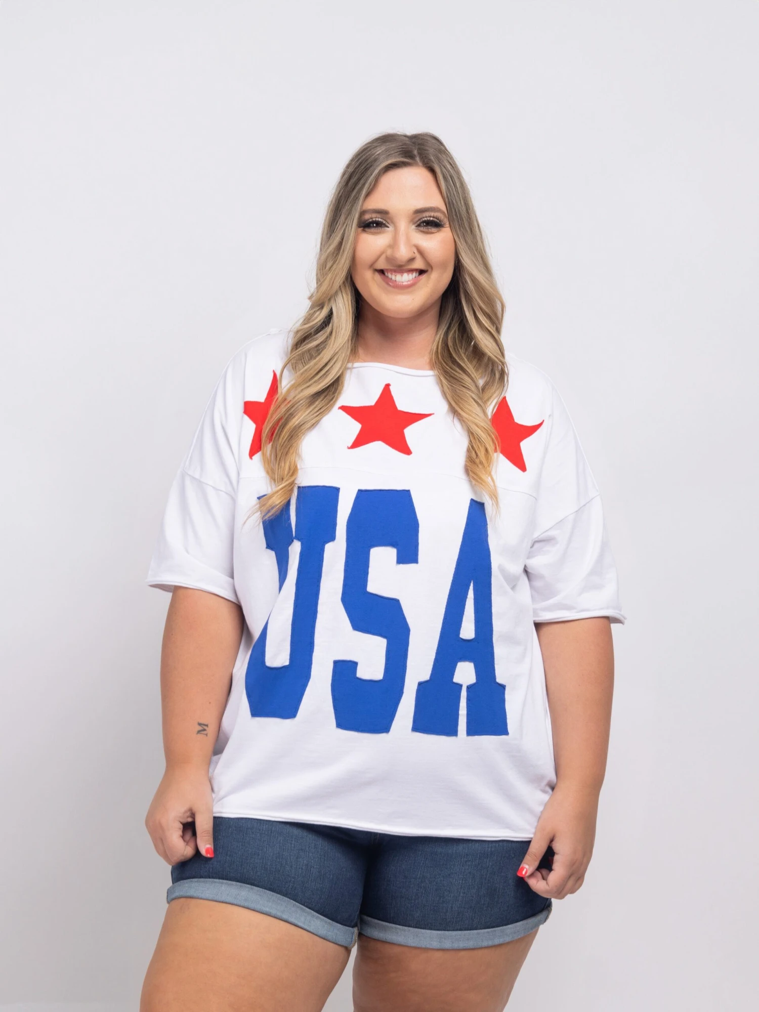 Features: Boat Neck, Short Sleeves, Graphic Top