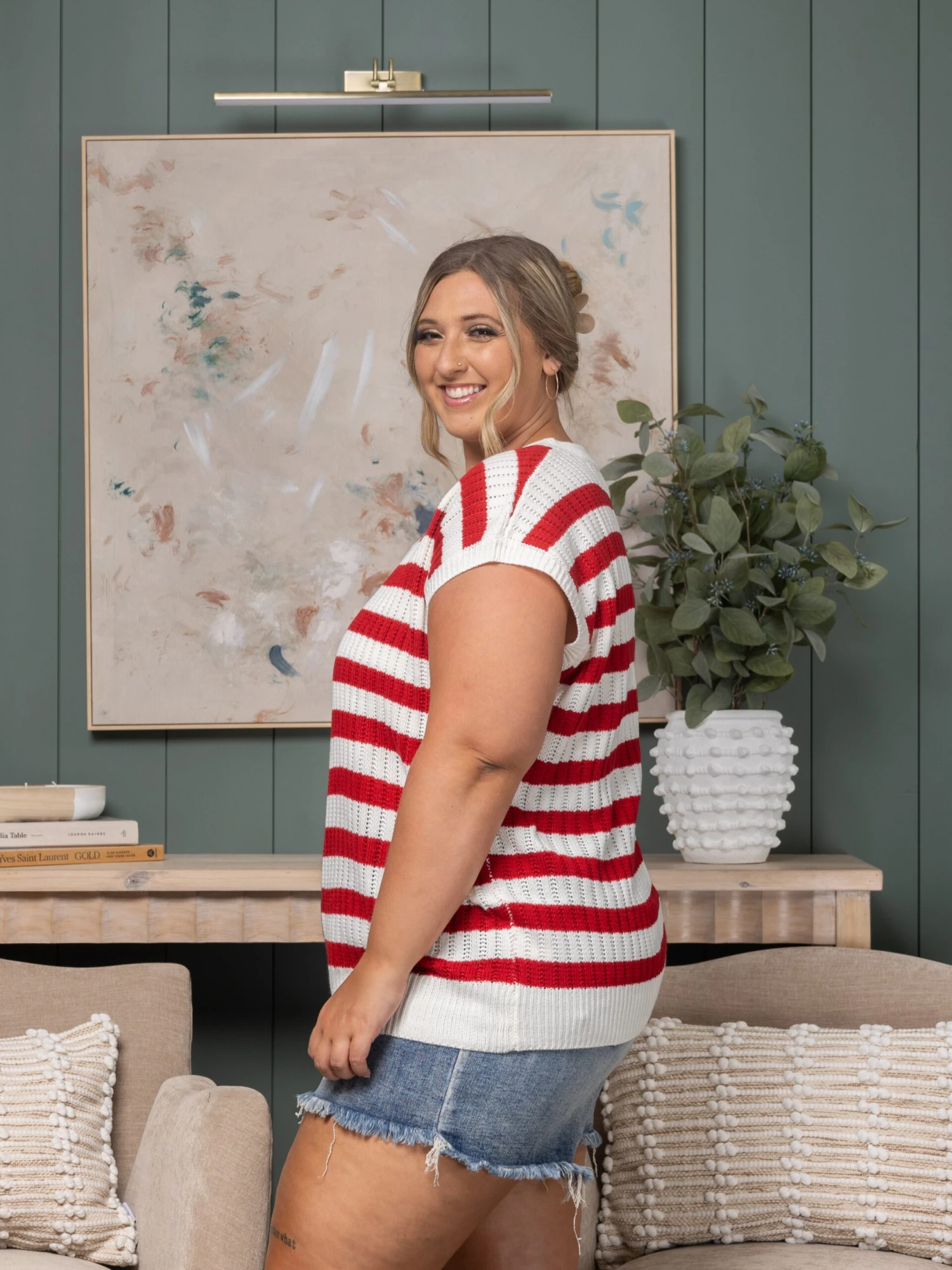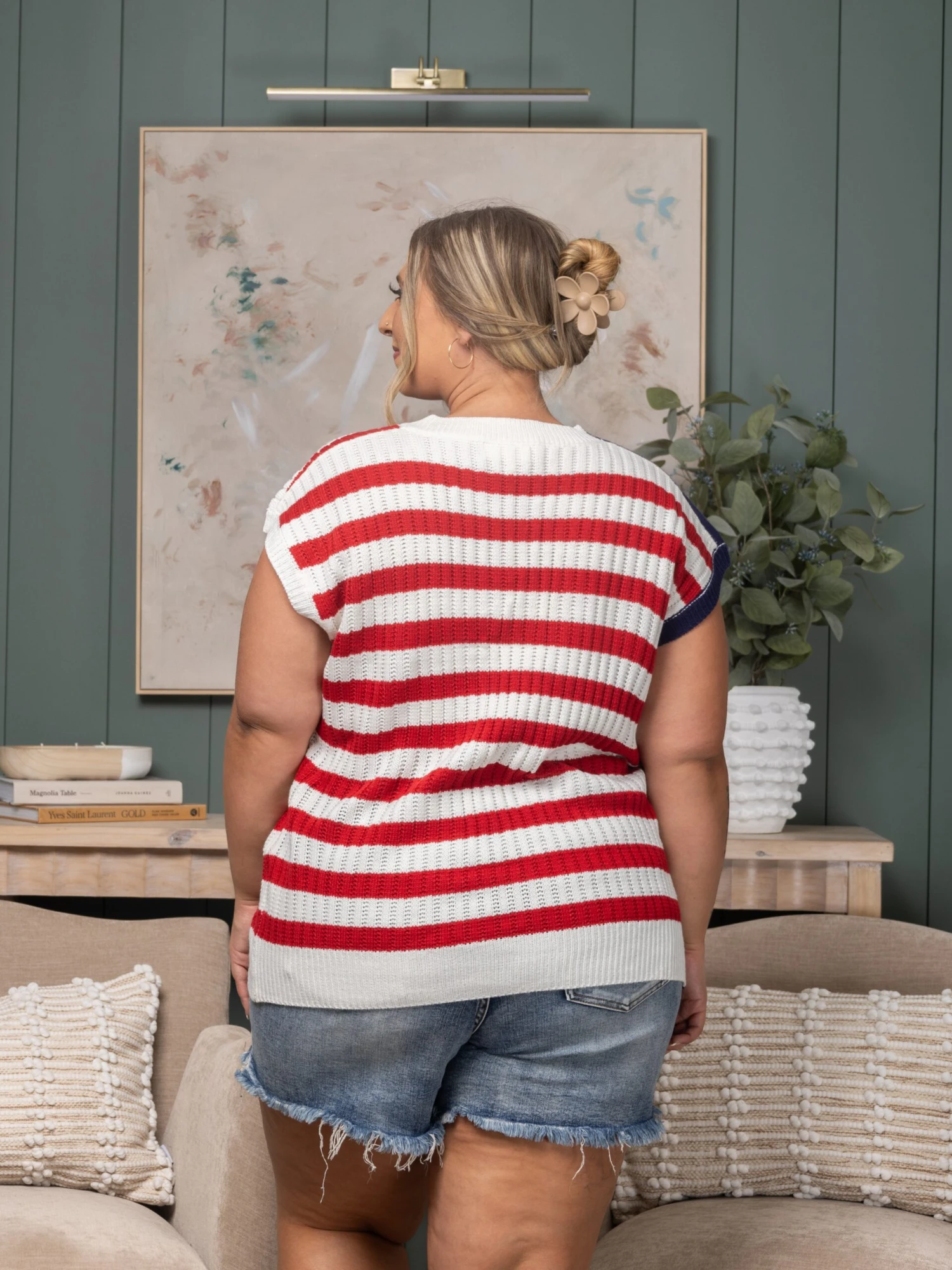Features: Short Dolman Sleeves, V Neck, American Flag Print