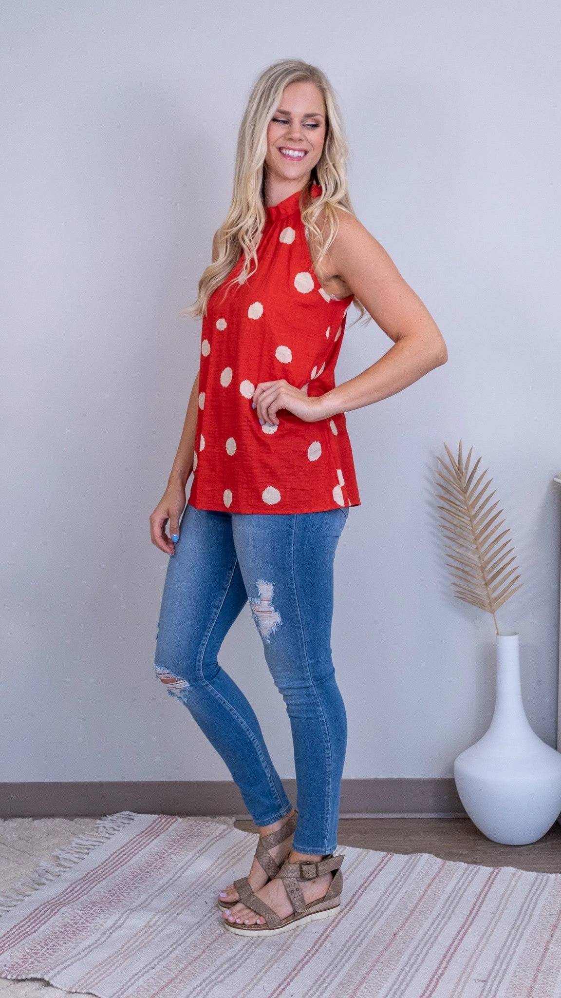 Features: sleeveless, round neck