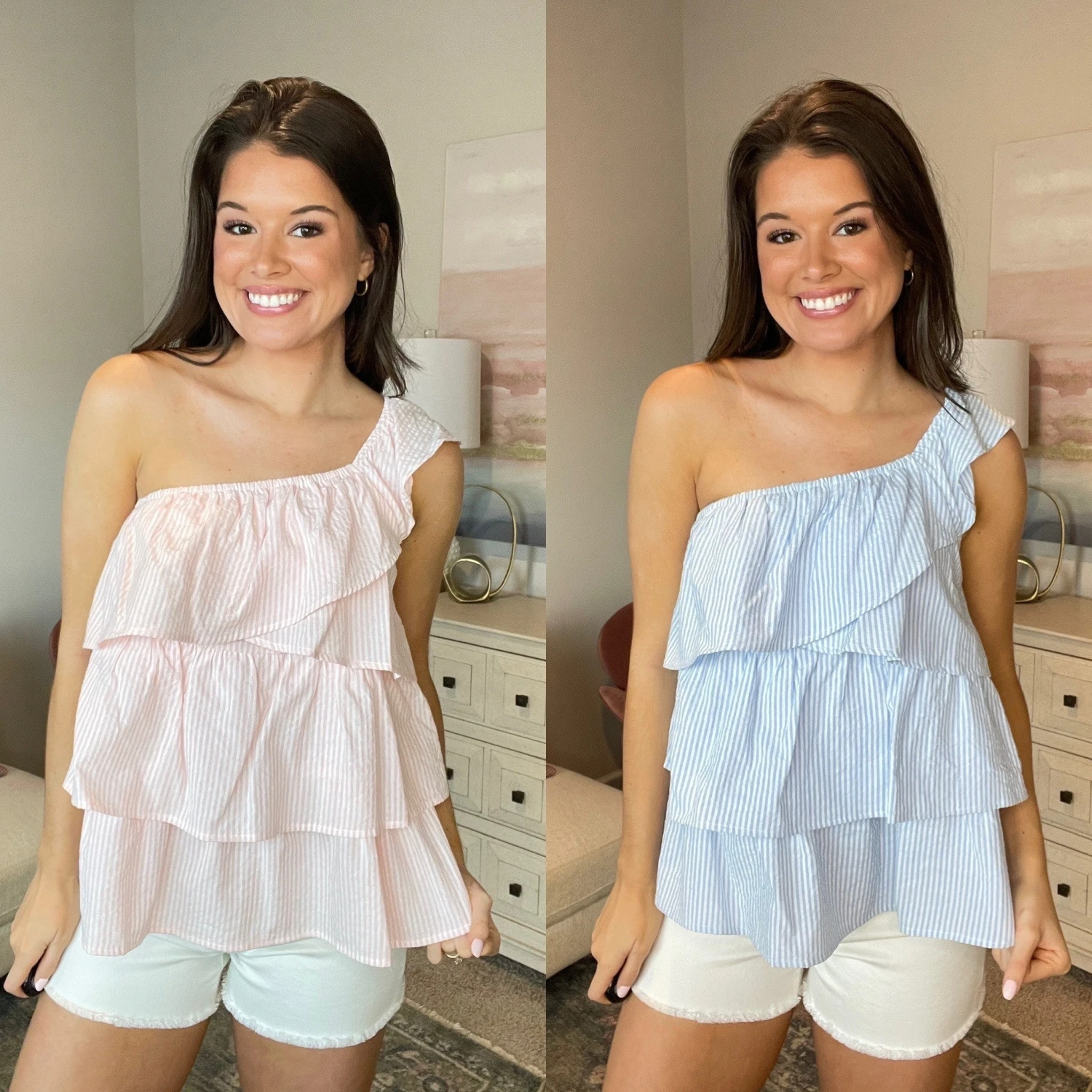 The “Wait For Me Top” has arrived! This adorable ruffle top is just what your closet is missing! We are loving the one shoulder and tiered look! Be sure to snag one before they sell out!