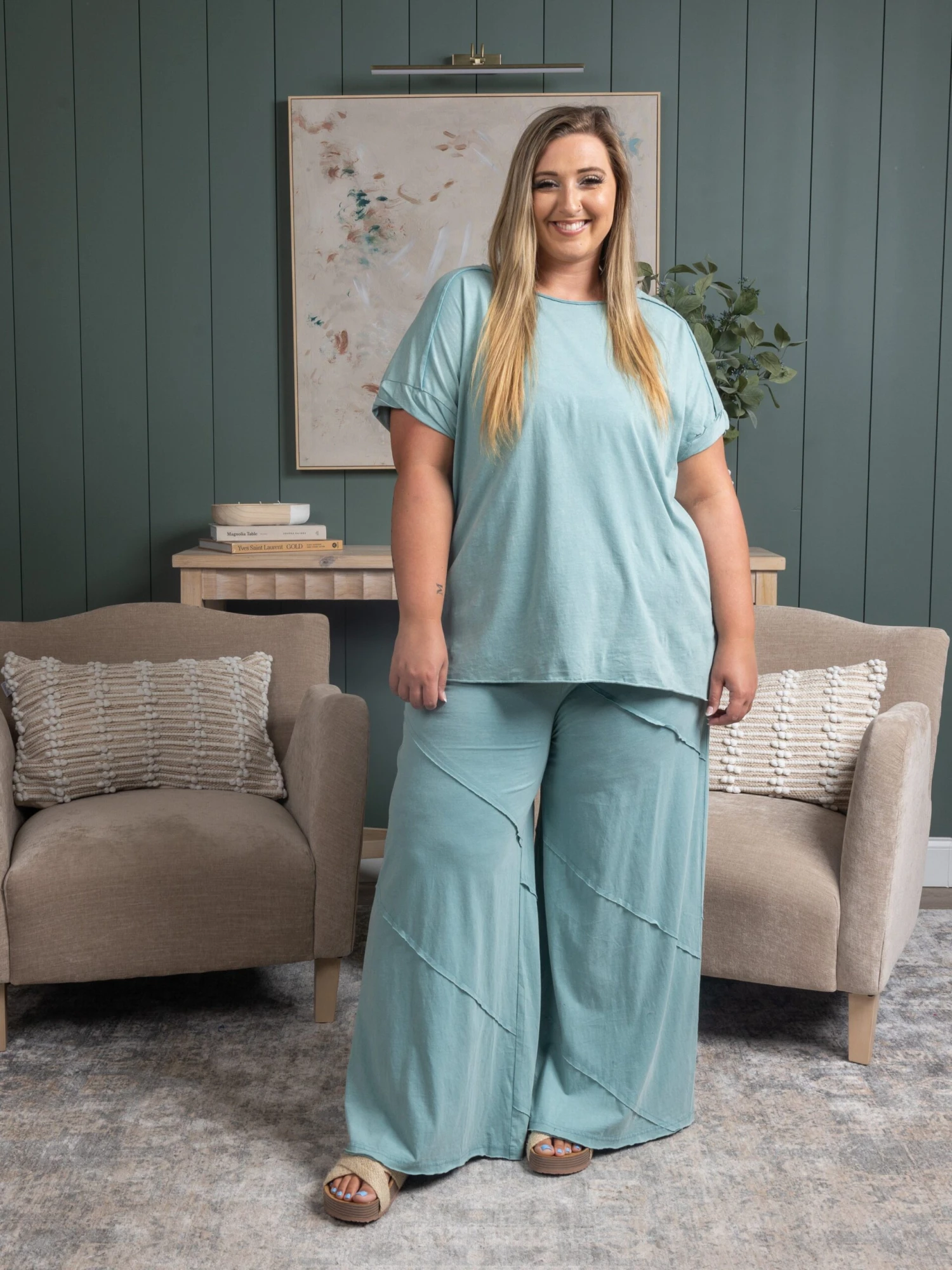 Erin is 5’8, 36C bra, typically wears size L/XL in tops and 14/16 in denim. Wearing size 1X