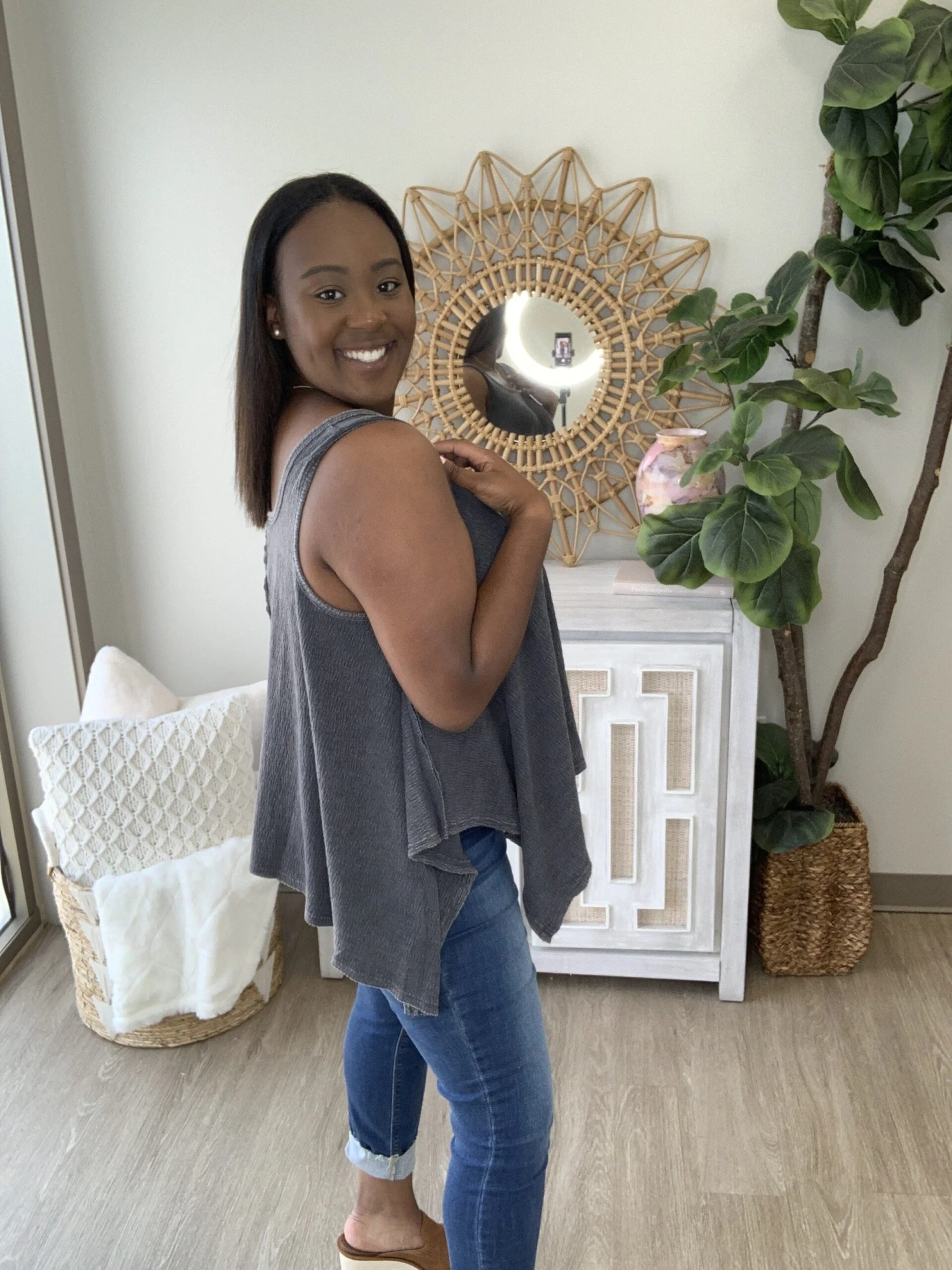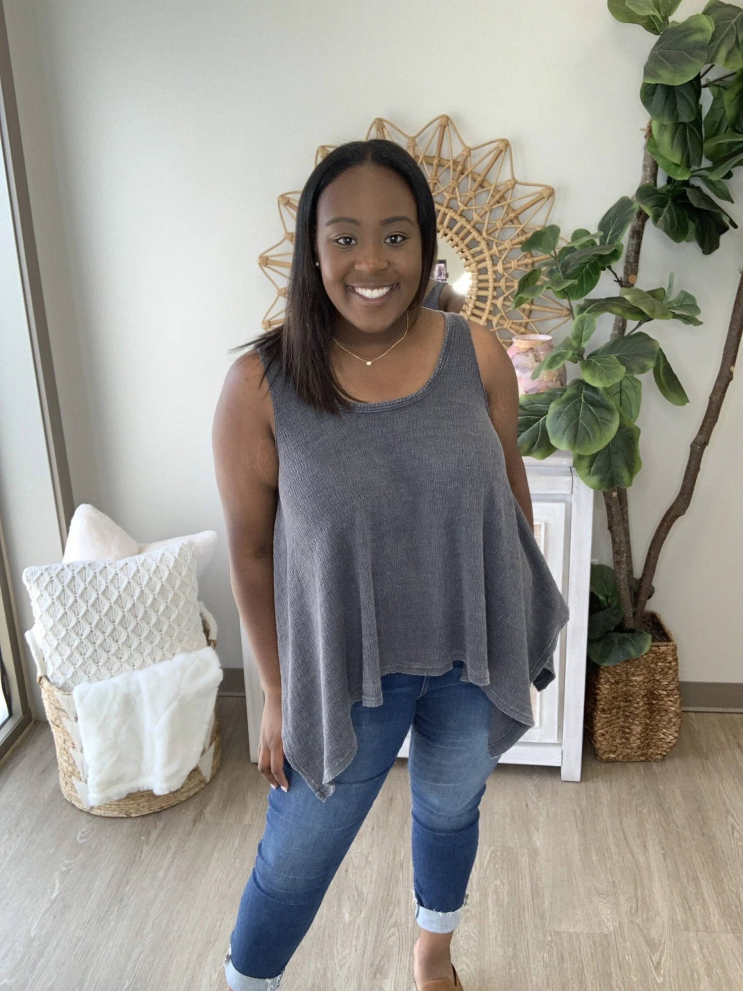 The “Your Moment Top” has arrived! This sleeveless top is screaming summer! So sweet and stylish, you know you want this one! Pair with denim or shorts, the possibilities are endless! Snag one before they sell out, you know they will!