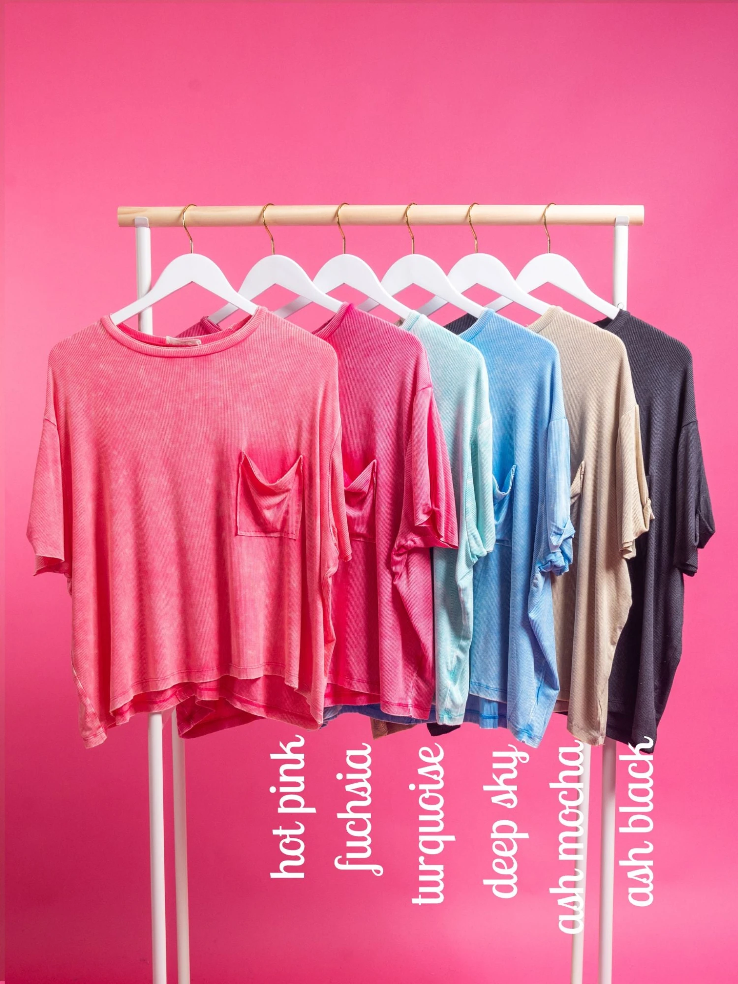 Zenana Washed Ribbed Cuffed Short Sleeve Round Neck Top | S/M-L/XL Essentials